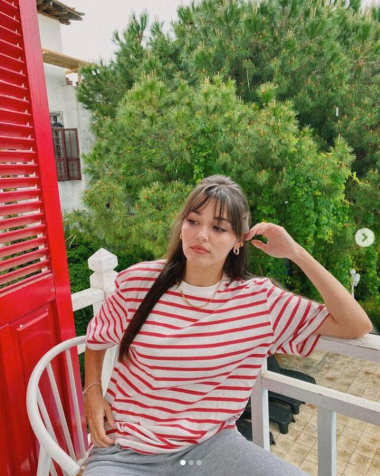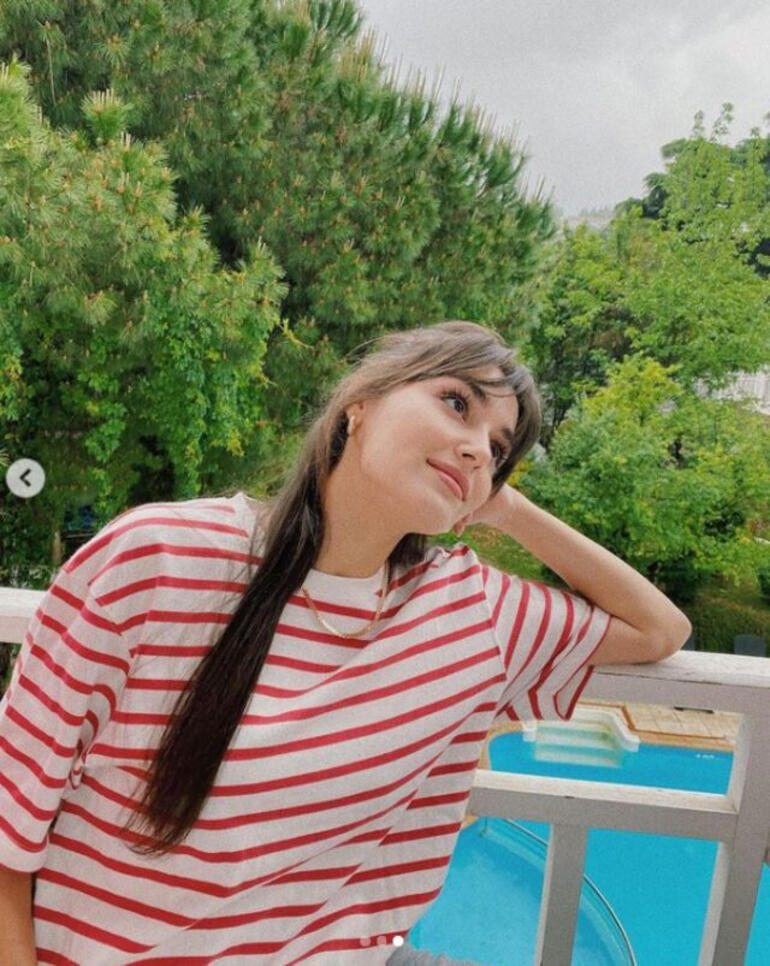 - Gri bir eşofman ve kırmızı çizgili bir bluz giyen oyuncu, günlük, sade, makyajsız haliyle fotoğraflara yansıdı. Hande Erçel’in fotoğrafları kısa sürede 2 buçuk milyona yakın beğeni aldı. (CNNTÜRK)