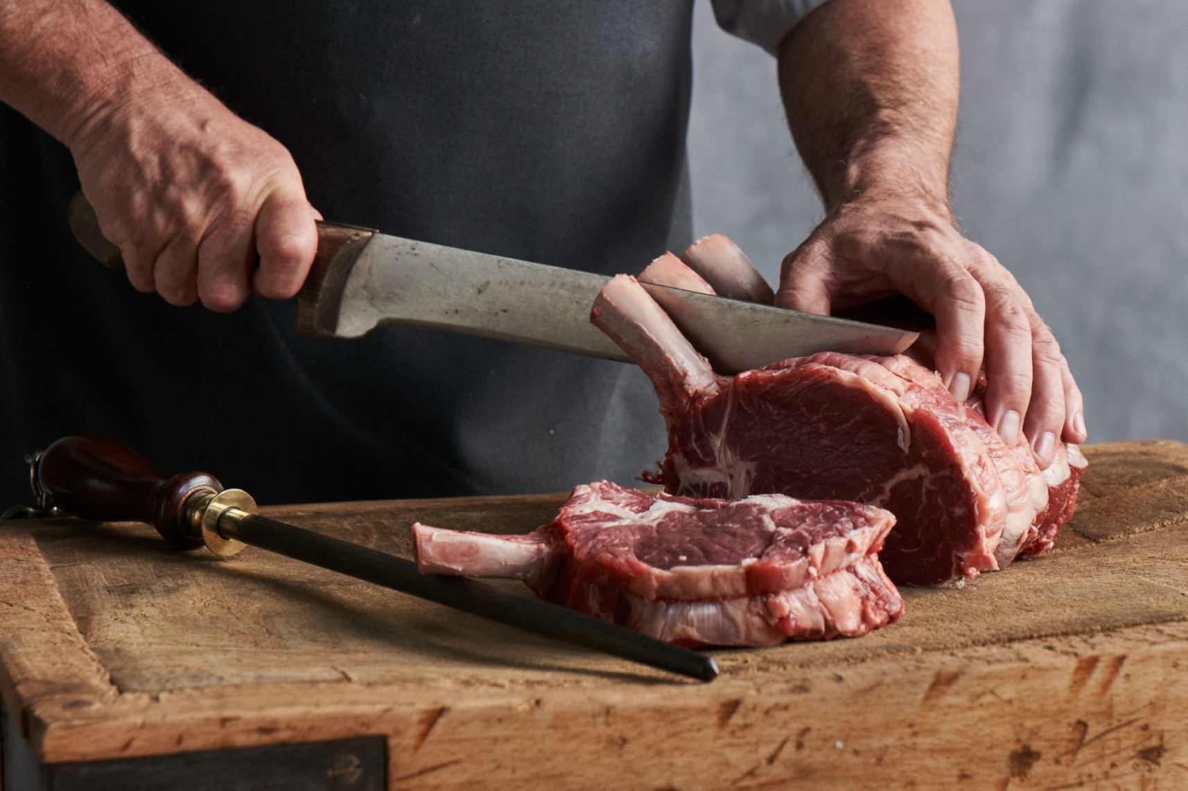 - Bıçakla kemik kesmeye çalışmayın, satır kullanın. Bıçağınızı yoğun et kestiğiniz zamanlarda her 10 dk’da bir yıkayın, özellikle kesici uç kısmını yağlardan arındırın. Bıçağınız ilk zamanki gibi kesmemeye başlarsa, masat kullanın. Hemen bileyeceksiniz.