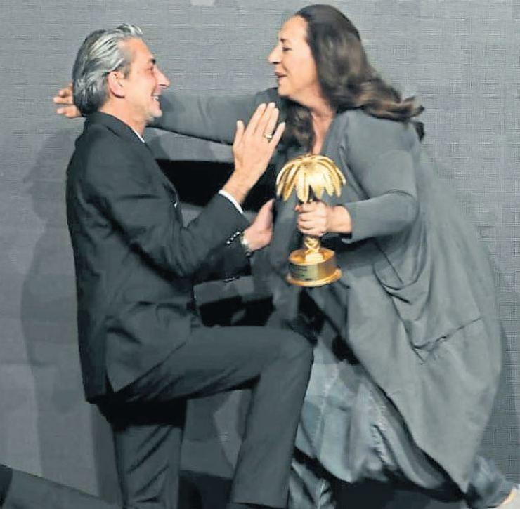 - Nergis Kumbasar ve Nurseli İdiz ‘Yılın Tiyatro Oyunu’ ödülünü almaya sahneye çıktıklarında salonda büyük alkış koptu.