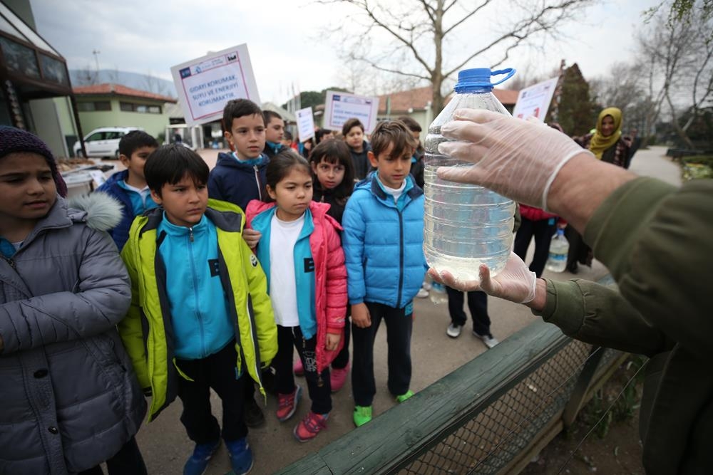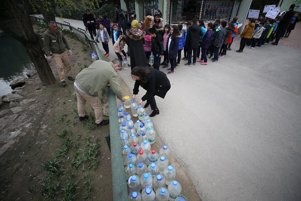 Bursa’da Milli Eğitim Müdürlüğü ile Büyükşehir Belediyesi iş birliğiyle yürütülen “Çevreni Tanı, Eğlen Öğren Projesi” kapsamında hayvanat bahçesinde ilkokul öğrencilerine suyun önemine ilişkin uygulamalı eğitim verildi.