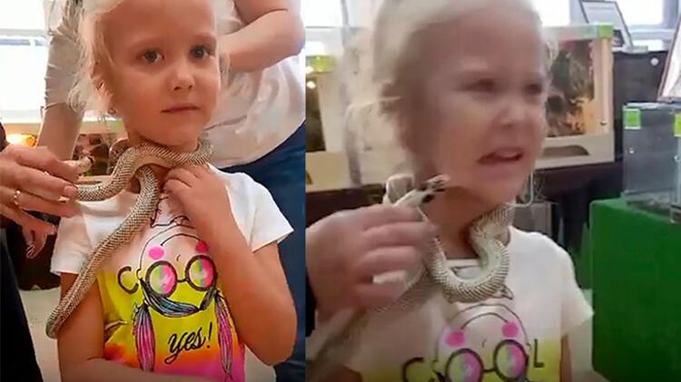 - BİR ANDA ISIRDI… Küçük Viktoria, yılanın kafasını yüzüne yaklaştırmasını izlerken gergin bir şekilde duruyor. Daha sonra, bir personel yılanı boynundan almaya çalışırken sürüngen bir anda dişlerini küçük kızın yanağına geçiriyor.
