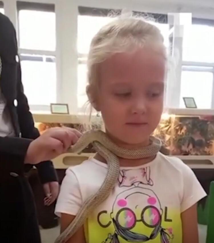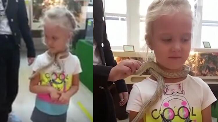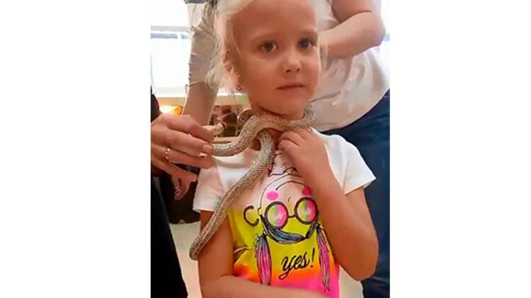 - O sırada kayıt altında olan telefon kamerası ise bu korkunç anları gözler önüne seriyor. Rusya’daki yerel medya organlarında paylaşılan videoda, her şey personelin küçük kızın boynuna yılan yerleştirmesiyle başlıyor.