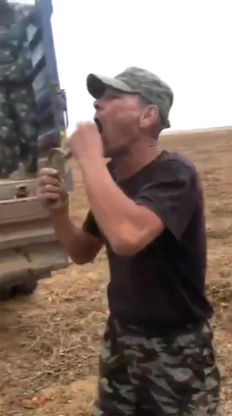 - Askeri bir şapka giyen ve adı bilinmeyen çiftçi, büyük bir gururla küçük bozkır engereğini yutarken yılan videonun sonuna doğru adamın dilini ısırıyor.