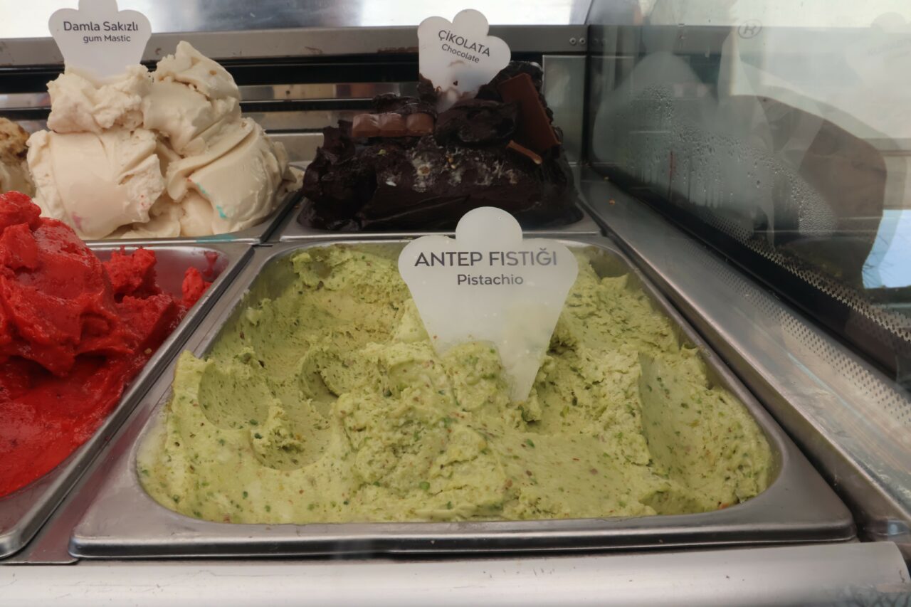 - “Antep fıstıklı dondurma hariç bütün dondurmaların topları 70 lira” Antep fıstıklı dondurmaların çift top sayıldığını ve 140 TL’den satıldığını ifade eden işletme sahibi Ömer Gökdoğan, “Bunu herkese söylüyoruz, altını bir çiziyoruz; ‘beyefendi fiyat farkları var, haberiniz olsun’ veya Antep fıstıklı seçtiklerinde, ‘beyefendi fiyat farkınız var, haberiniz olsun’ diye bunu ısrarla söylüyoruz. Antep fıstığı hariç hepsi 70 lira. Antep fıstığı çift top sayılıyor 140 lira; çünkü çok maliyetli geliyor ve içinde gerçek fıstık var baklavacıların kullandığı.” ifadelerine yer verdi.