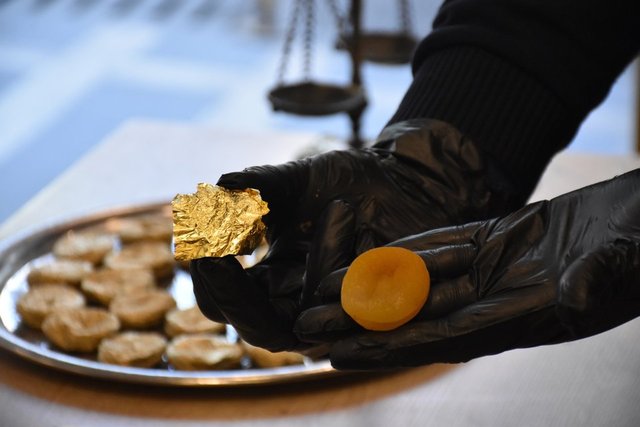 - Altın kaplama kayısının tanesini 200 liradan, kilosunu ise 10 bin liradan satışa çıkardığını anlatan Yusuf Güzel, “Biz kayısıya daha büyük bir değer katarak yenilebilir altın ile bütünleştirdik. Yaptığımız çalışma sonunda elde ettiğimiz altınlı kayısı yeni bir ürün oldu.