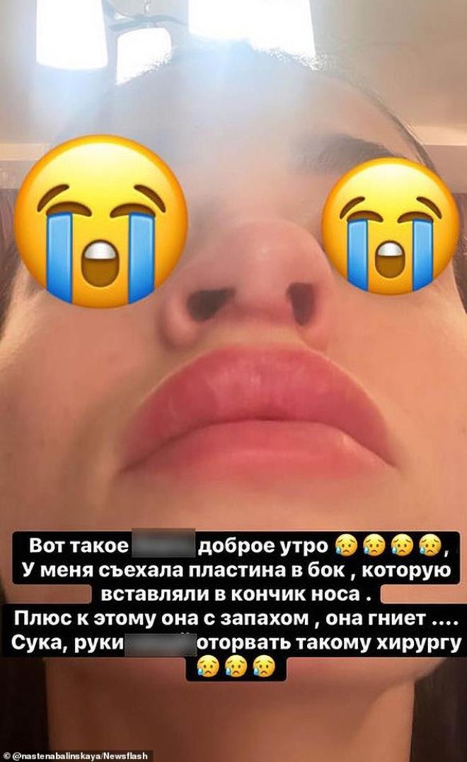 - Anastasia, çürüyen burnunun fotoğrafını “Plastik estetik ameliyatı kurbanı. Bıçak altına ilk yattığım güne lanet ediyorum” aşlığı ile paylaştı.