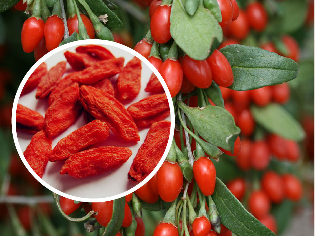 - Goji bir sesquiterpene olan ve kalp ile kan basıncı ayarlamalarına yardımcı olan cyperone içerir. Anthocyanin maddesi ise kalp damarlarının dayanıklılığını arttırır.