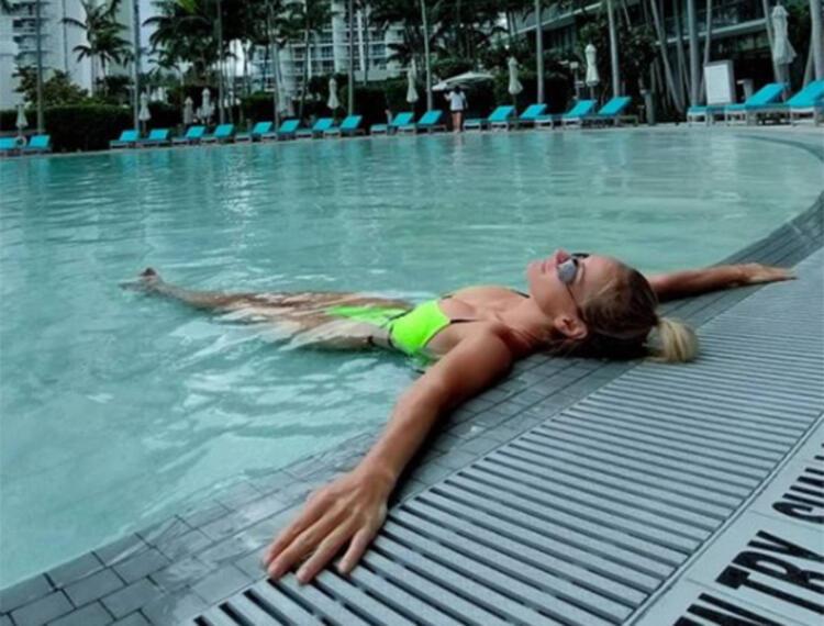 - Instagram’da 790 bin takipçisi bulunan güzel model, geçtiğimiz günlerde sarı neon rengi mayokinisi ile havuz keyfi yaparken çekilen fotoğraflarını da yayınlamıştı.