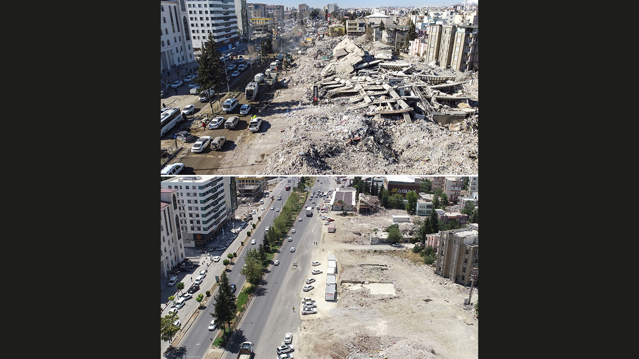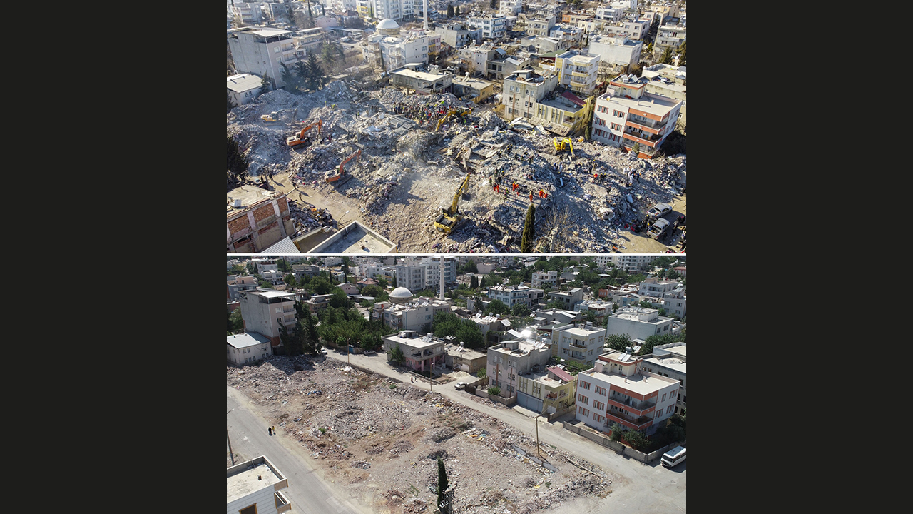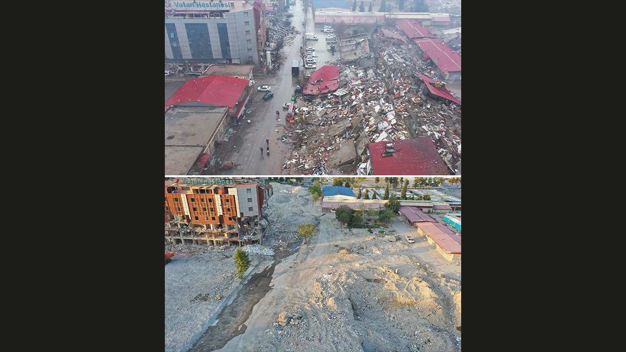 - Depremin ardından enkaz bulunan alanlar, molozların kaldırılmasının ardından yeniden görüntülendi.