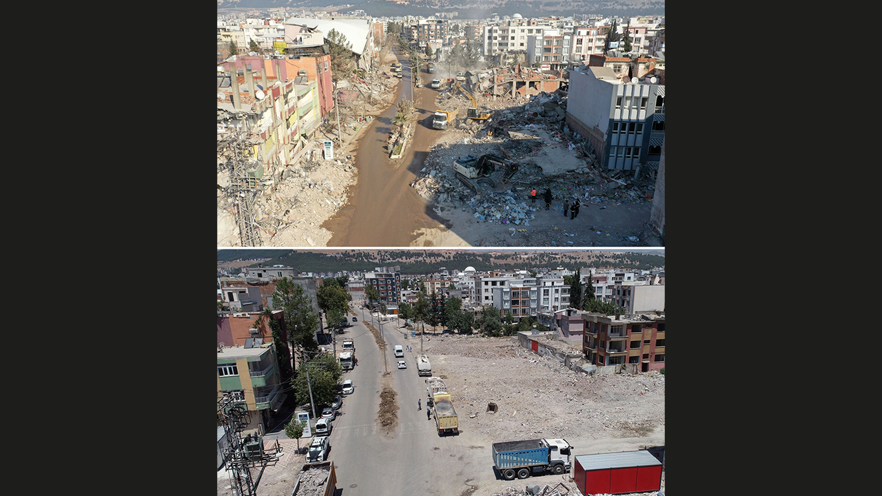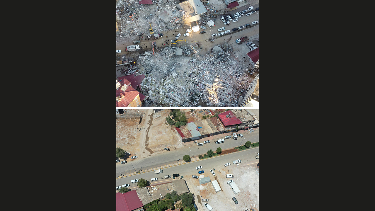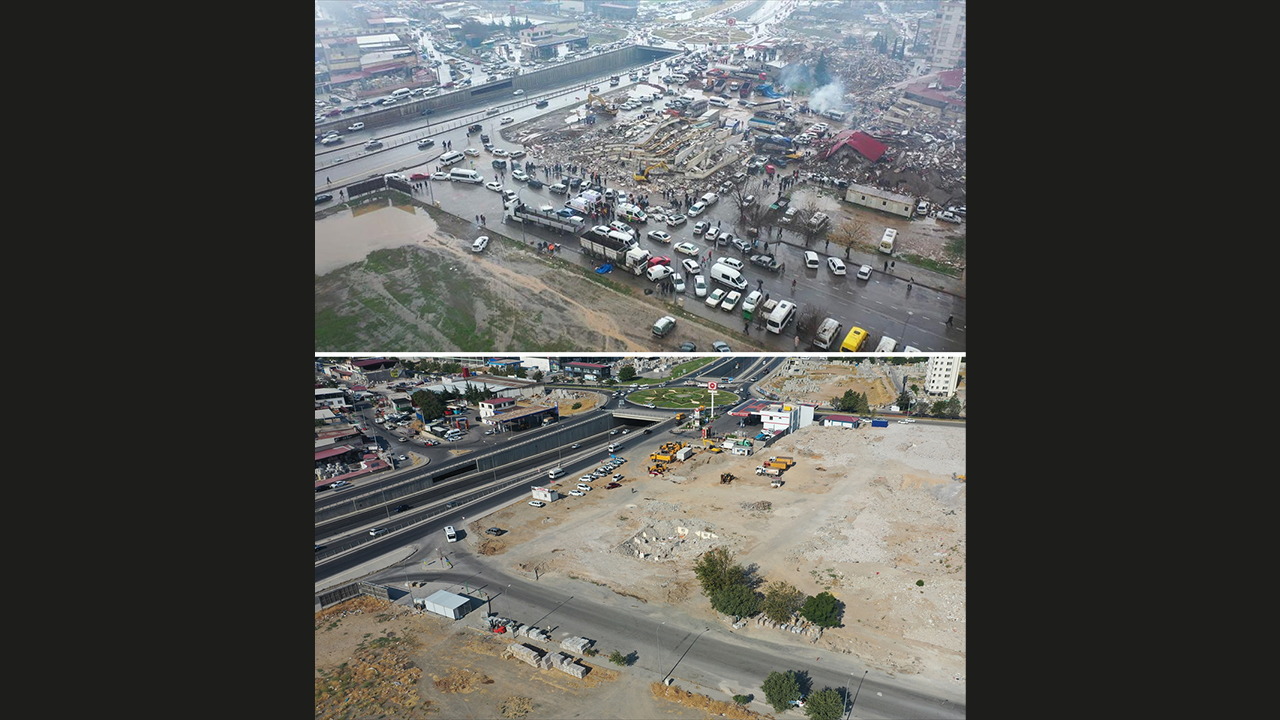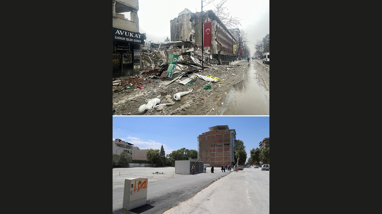 - Depremin ardından enkaz bulunan alanlar, molozların kaldırılmasının ardından yeniden görüntülendi.