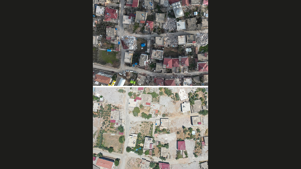 - Depremin hemen ardından kaydedilen bölgelerin son hali dron ile yeniden görüntülendi.