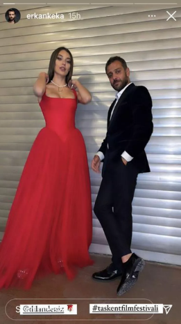 - Festivalden paylaşım yapmayı ihmal etmeyen Dilan Çiçek Deniz, dekolteli kırmızı elbisesiyle meslektaşı Erkan Kolçak Köstendil’e verdiği pozları Instagram sayfasında yayınladı.