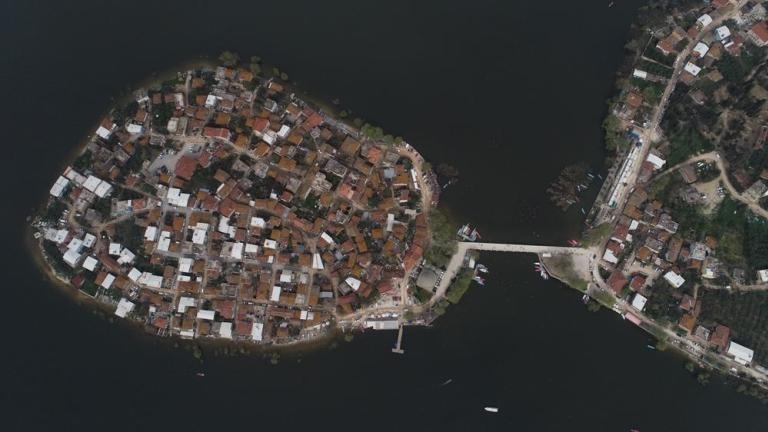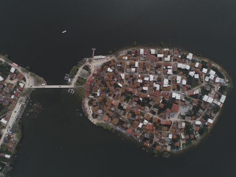 Fotoğrafta, Uluabat Gölü kıyısındaki Gölyazı köyü görülüyor.