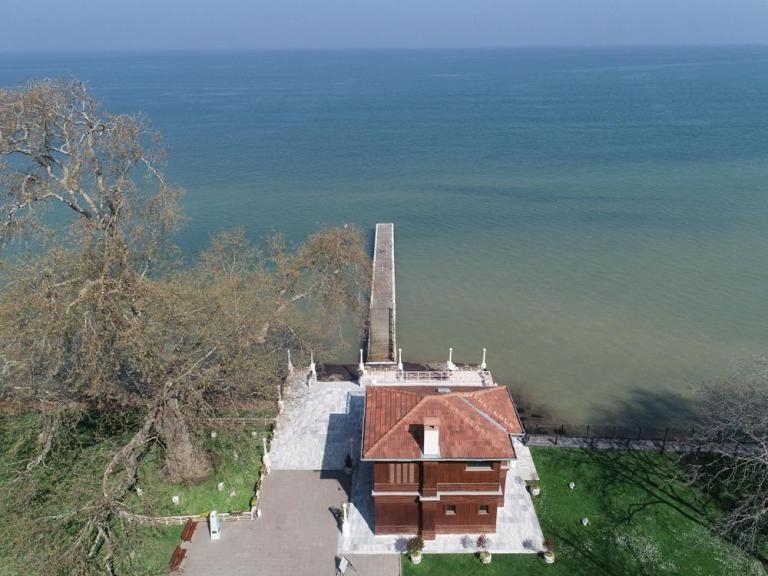 Fotoğrafta, Mustafa Kemal Atatürk’ün Yalova’da yaptırdığı ve 1930 yılında bir çınar ağacı dalının kesilmemesi için zemininden kaydırttığı “Yürüyen Köşk” görülüyor.