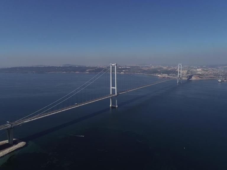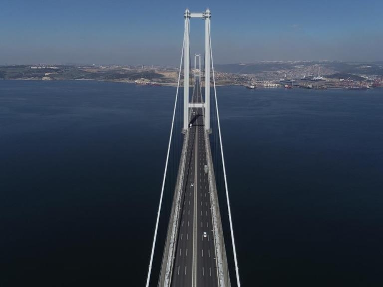 Fotoğrafta, İstanbul-Bursa-İzmir Otoyolu Projesi’nin en büyük ayağını oluşturan Osman Gazi Köprüsü görülüyor.