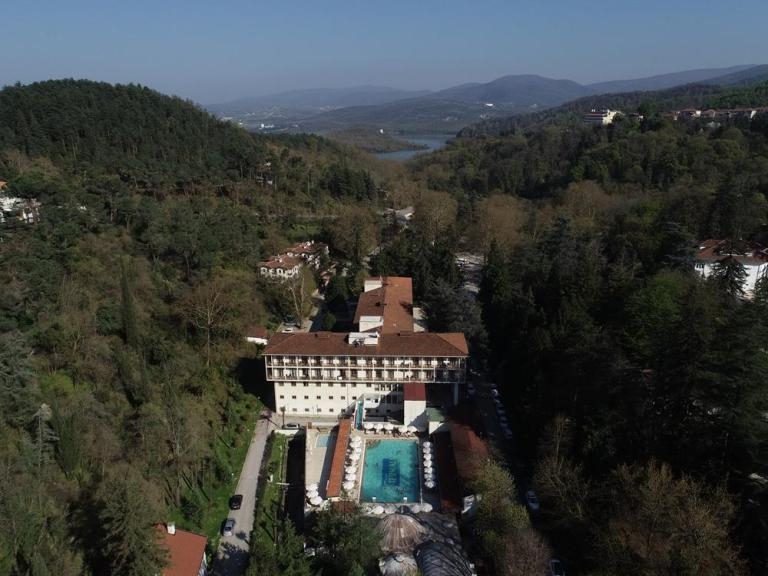 Fotoğrafta, Roma döneminde “hayat iksiri” kaplıca hamamları yapılan, Sultan Abdülhamit zamanında önem kazanan, Büyük Önder Atatürk döneminde ve sonrasında ünlenen Yalova’nın Termal ilçesindeki kaplıca görülüyor.