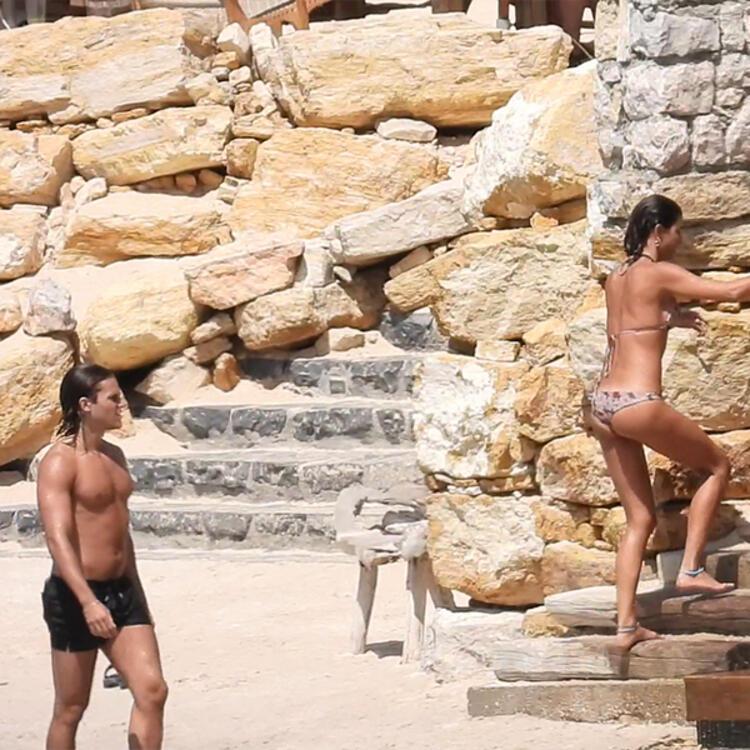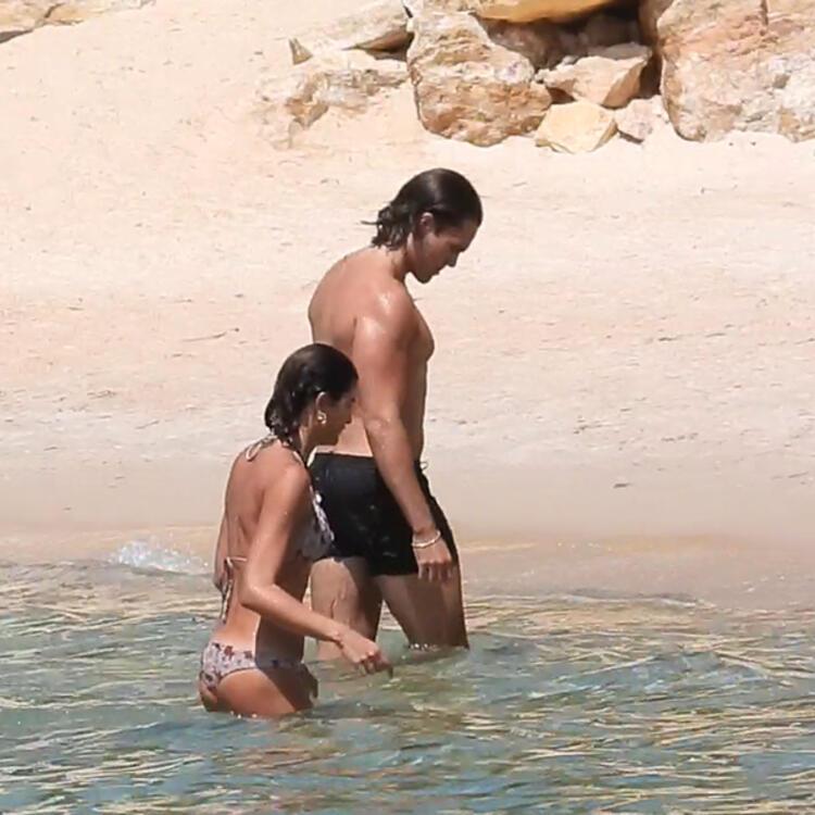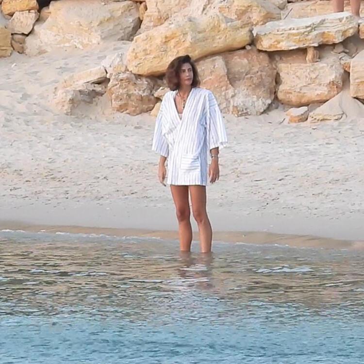 - Daha fazla dayanamayan Tüzünataç, son bir kez daha baktıktan sonra kimsenin olmadığını düşünerek Bennu Gerede’nin oğlu Miro Gerede Erkaya ile denize girdi.