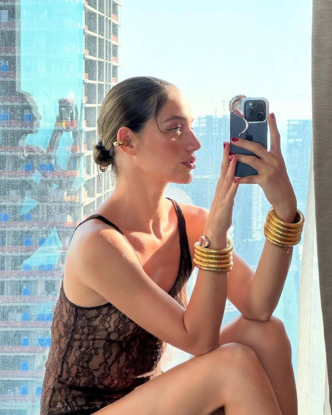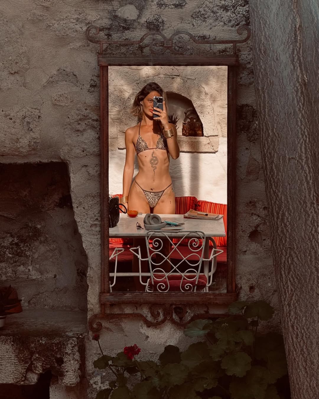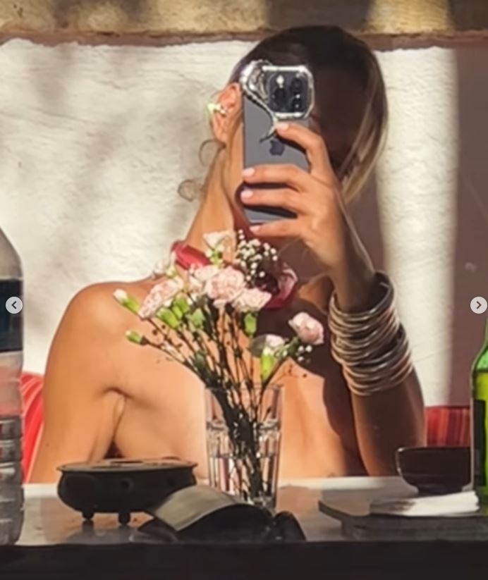 - Bikinisinin üstünü çıkartarak üstsüz poz verdi.