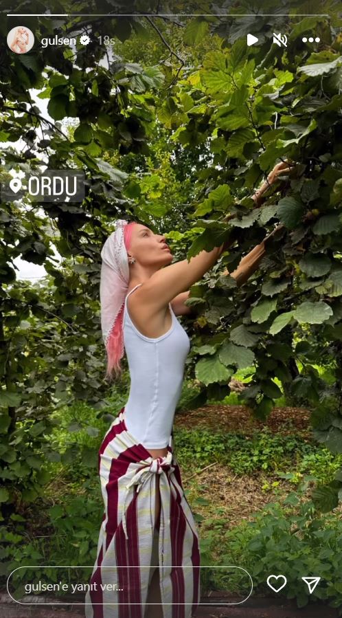 - Başına yemeni bağlayıp fındık topladığı kareyi takipçileriyle paylaşan Gülşen’in fotoğrafı kısa sürede takipçilerinden yoğun ilgi gördü.