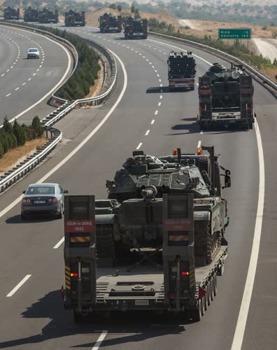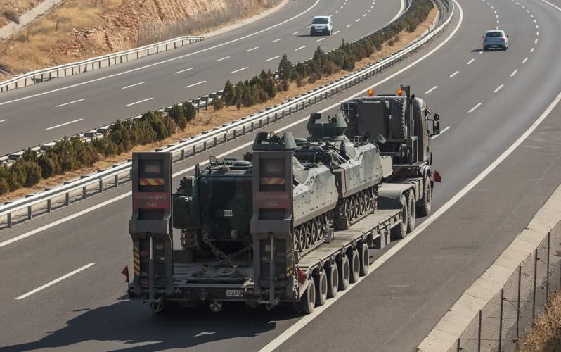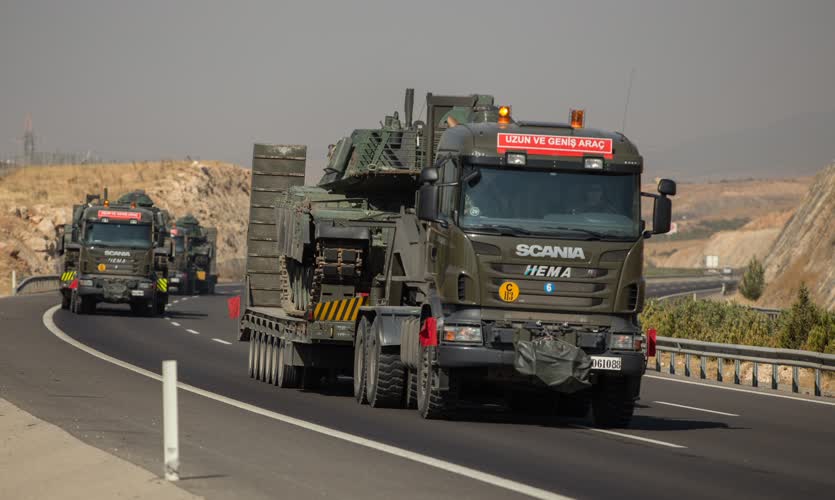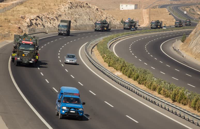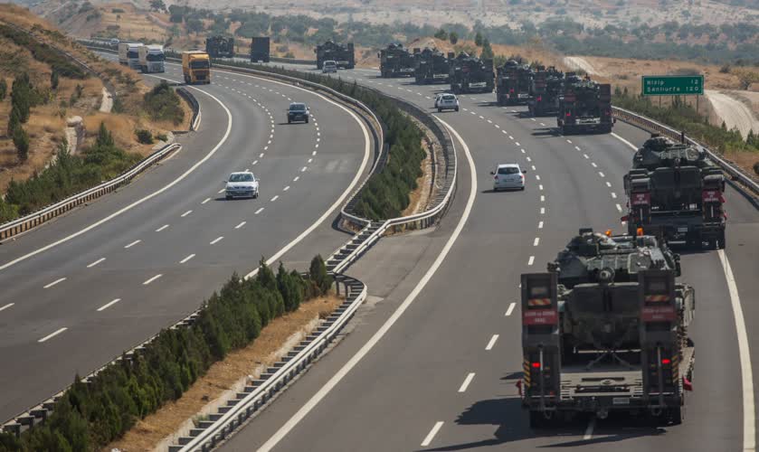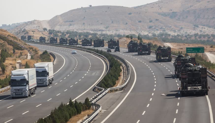 Batı illerinden yola çıkan askeri araçlar, Gaziantep’ten Güneydoğu’ya geçiş yaptı. Dün gece 5. Zırhlı Tugay Komutanlığına konuşlandırılan 14 tank ve 2 zırhlı personel taşıyıcıdan oluşan askeri konvoy, tırlarla Gaziantep-Şanlıurfa otoyolundan Güneydoğu’dak