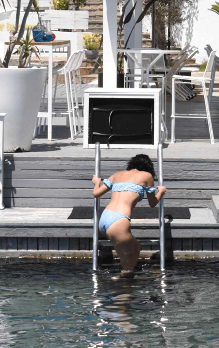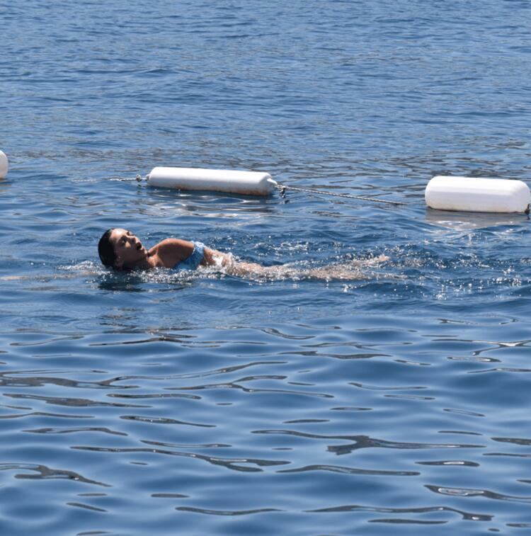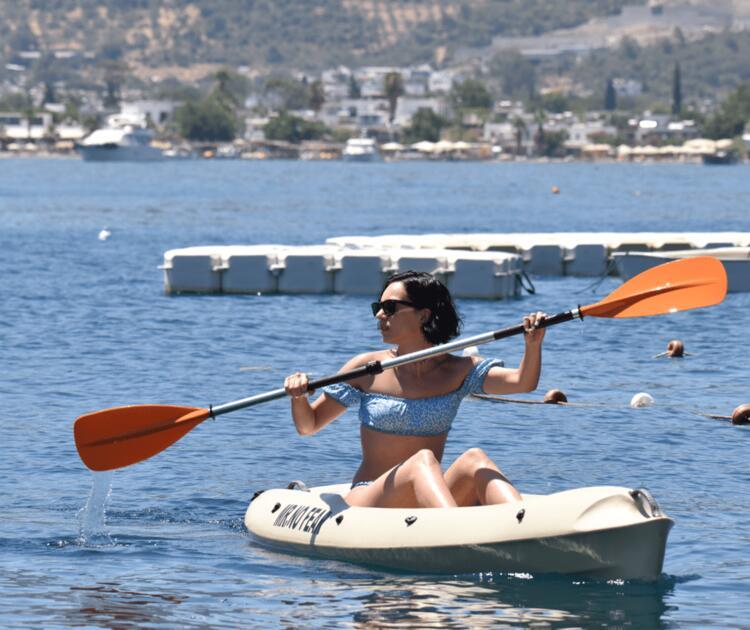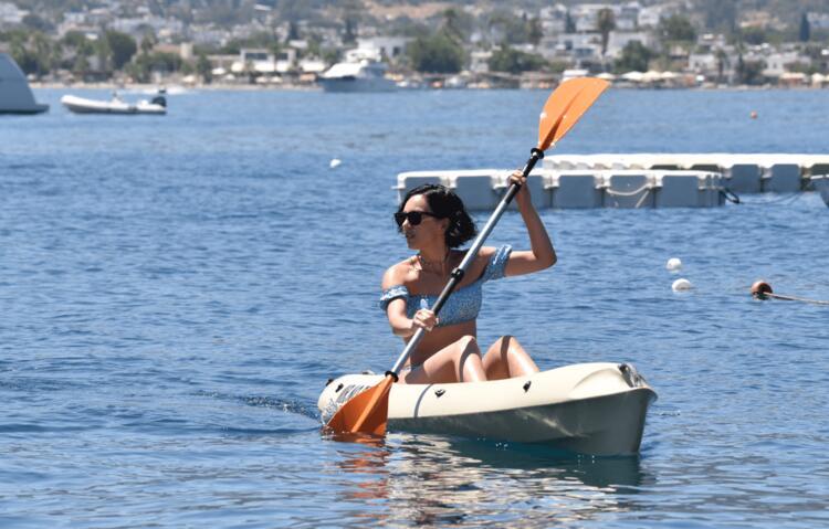 - Ardından iskelenin merdivenlerinden kendisini Bodrum’un serin sularına bıraktı. Daha sonra da denizde kano keyfi yaparak kürek çekti.