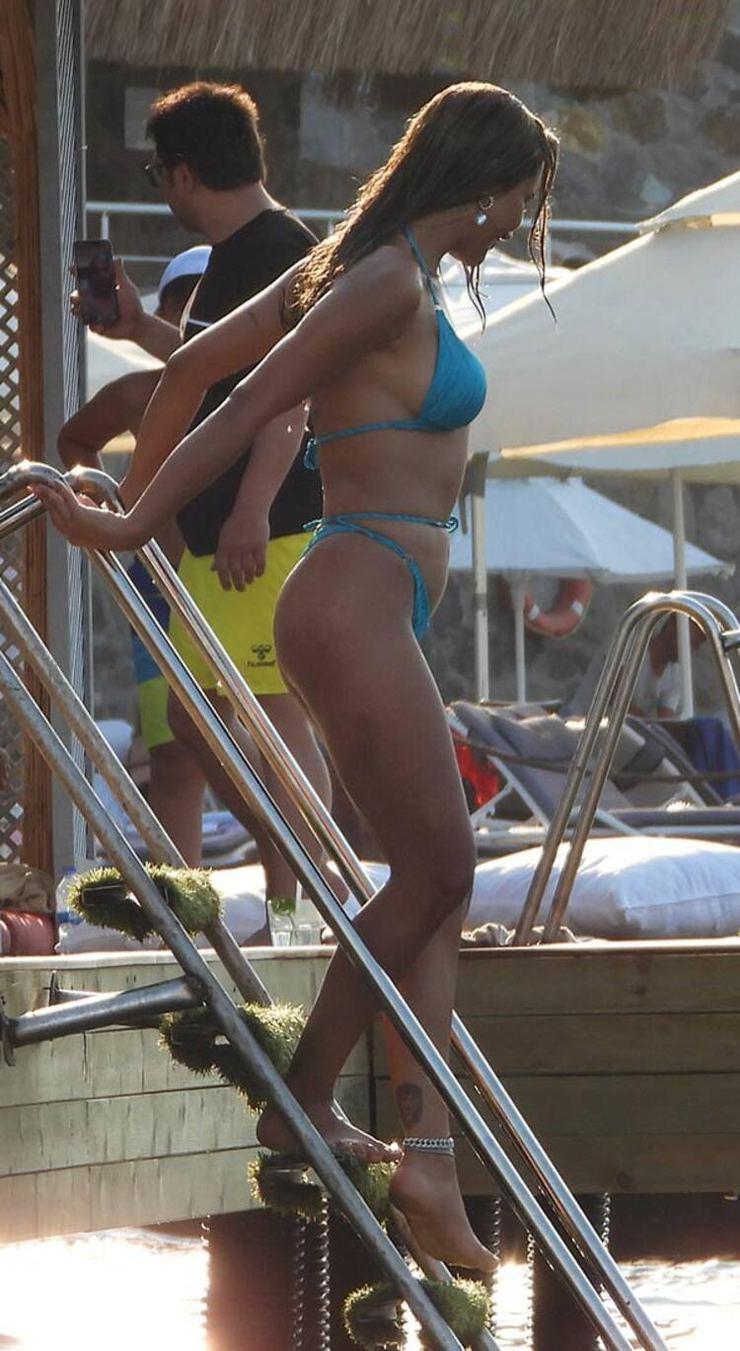 - Arkadaşları ile locada sohbet eden 24 yaşındaki ünlü model, sık sık da güneş yağı sürerek şezlongta esmerleşti.