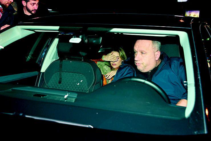- Aracın arka koltuğuna oturan popçu, eliyle yüzünü saklamaya çalıştı.
