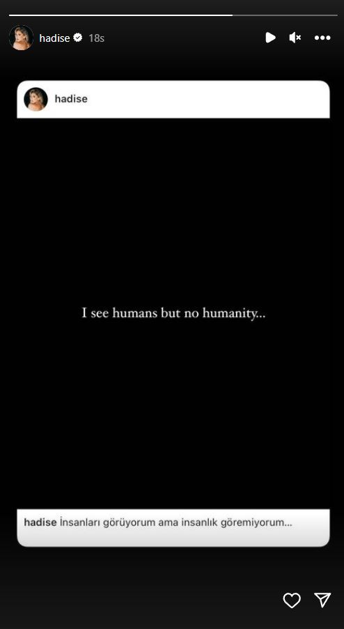 - “İnsanlık göremiyorum…” Son olarak paylaşımlarıyla adından söz ettiren Hadise’den bir açıklama geldi. “İnsanları görüyorum ama insanlık göremiyorum…” diyen Hadise, devamında şunları yazdı: “Hiçbir çocuğun, hiçbir kadının, hiçbir erkeğin, hiçbir insanın ölmemesi konusunda hepimiz hemfikiriz sanırım.