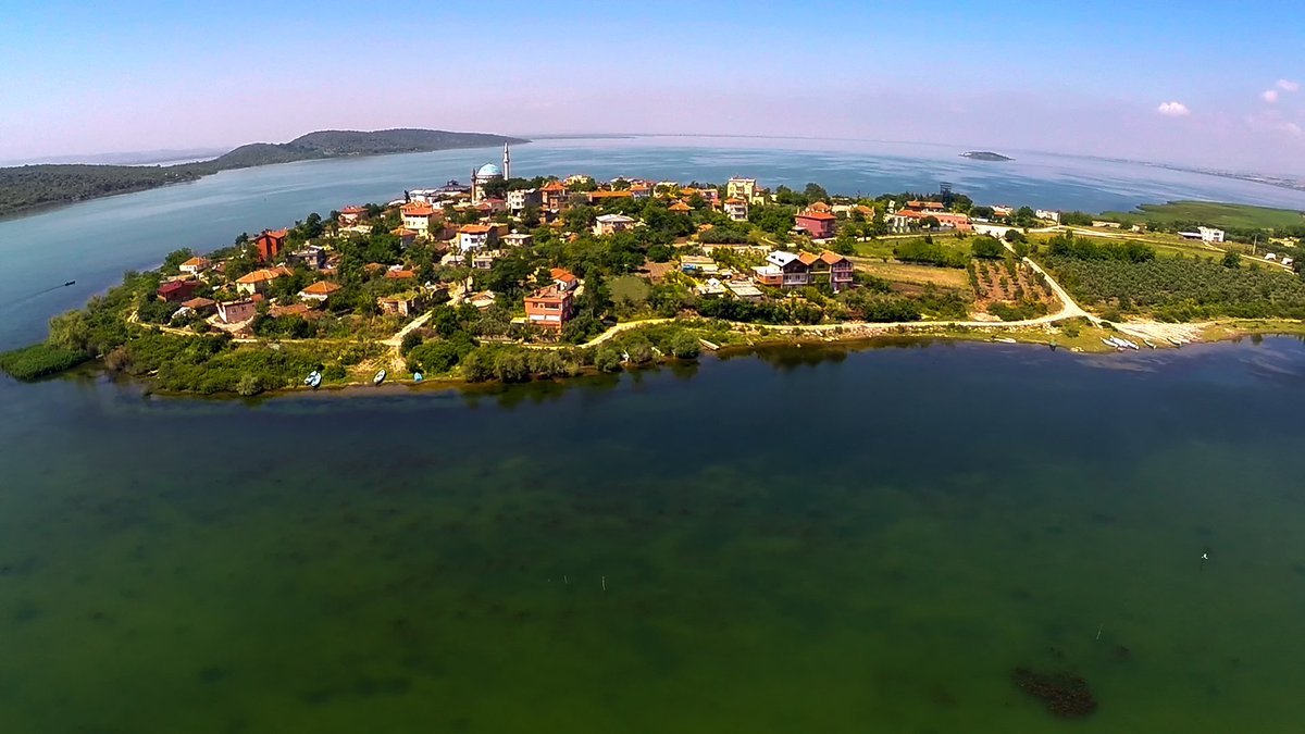 - Uluabat Gölü deniz seviyesinden 9 metre yüksektedir. Gölün kuzeyinde yüksekliği az tepeler, güneyinde ise dik yamaçlı dağlık alanlar var. Doğu-batı yönünde uzunluğu: 24 km. ve kuzey-güney yönünde uzunluğu ise, 12 km.dir. 1993 yılında, gölün güney ve batı bölümlerinde setler yapılmış ve göl sularının tarım alanlarını basması engellenmiştir. Gölde, Halilbey adası bulunuyor. Ayrıca, altı küçük adacık daha var.
