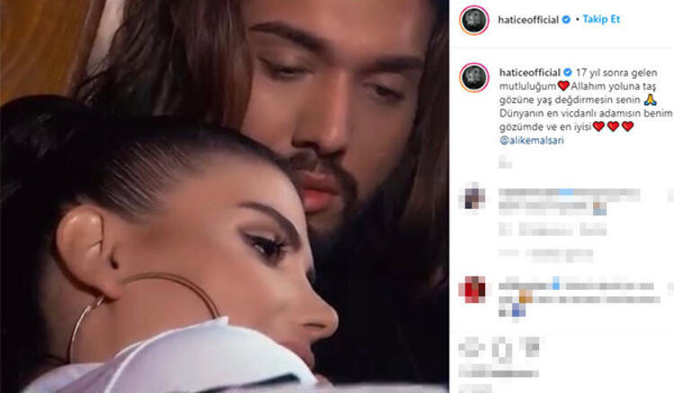 - Instagram’da Ali Kemal Sarı ile romantik bir fotoğrafını da paylaşan Hatice, “17 yıl sonra gelen mutluluğum. Allah’ım yoluna taş gözüne yaş değdirmesin senin. Dünyanın en vicdanlı adamısın benim gözümde ve en iyisi” ifadelerini kullanmıştı. (Milliyet)