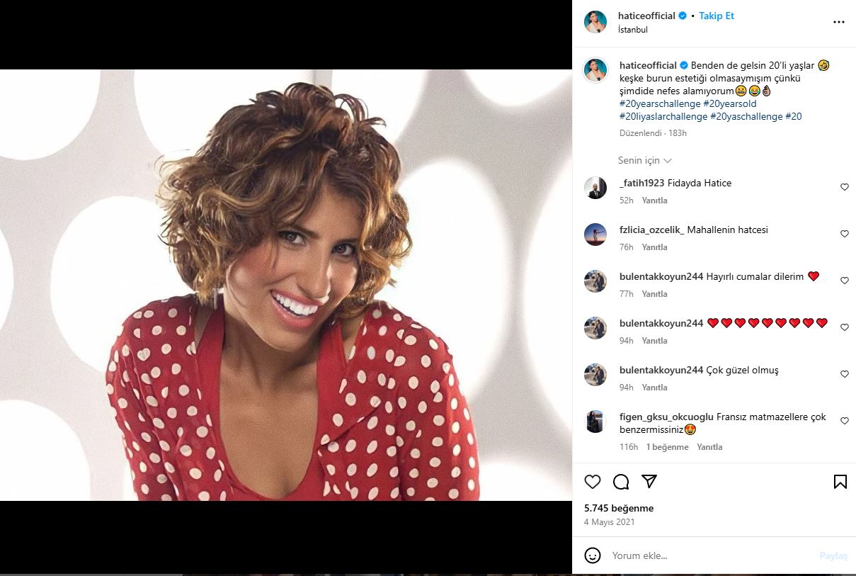 - “Benden de gelsin 20’li yaşlar. Keşke burun estetiği olmasaymışım çünkü şimdi de nefes alamıyorum” notuyla paylaştı. Estetiksiz halini hayranlarına hatırlattı.