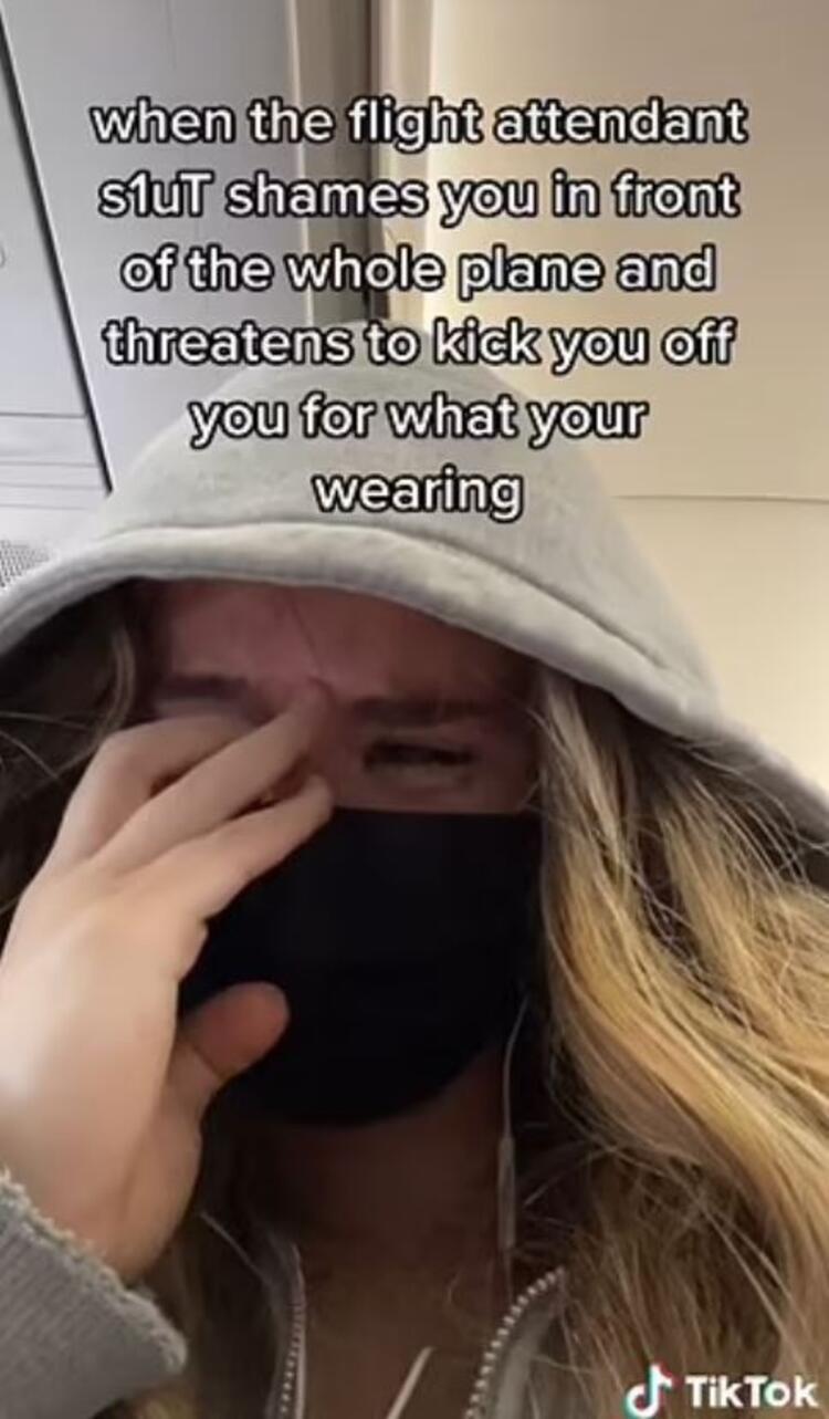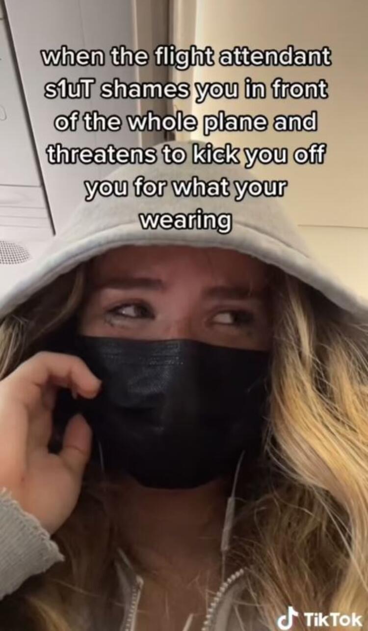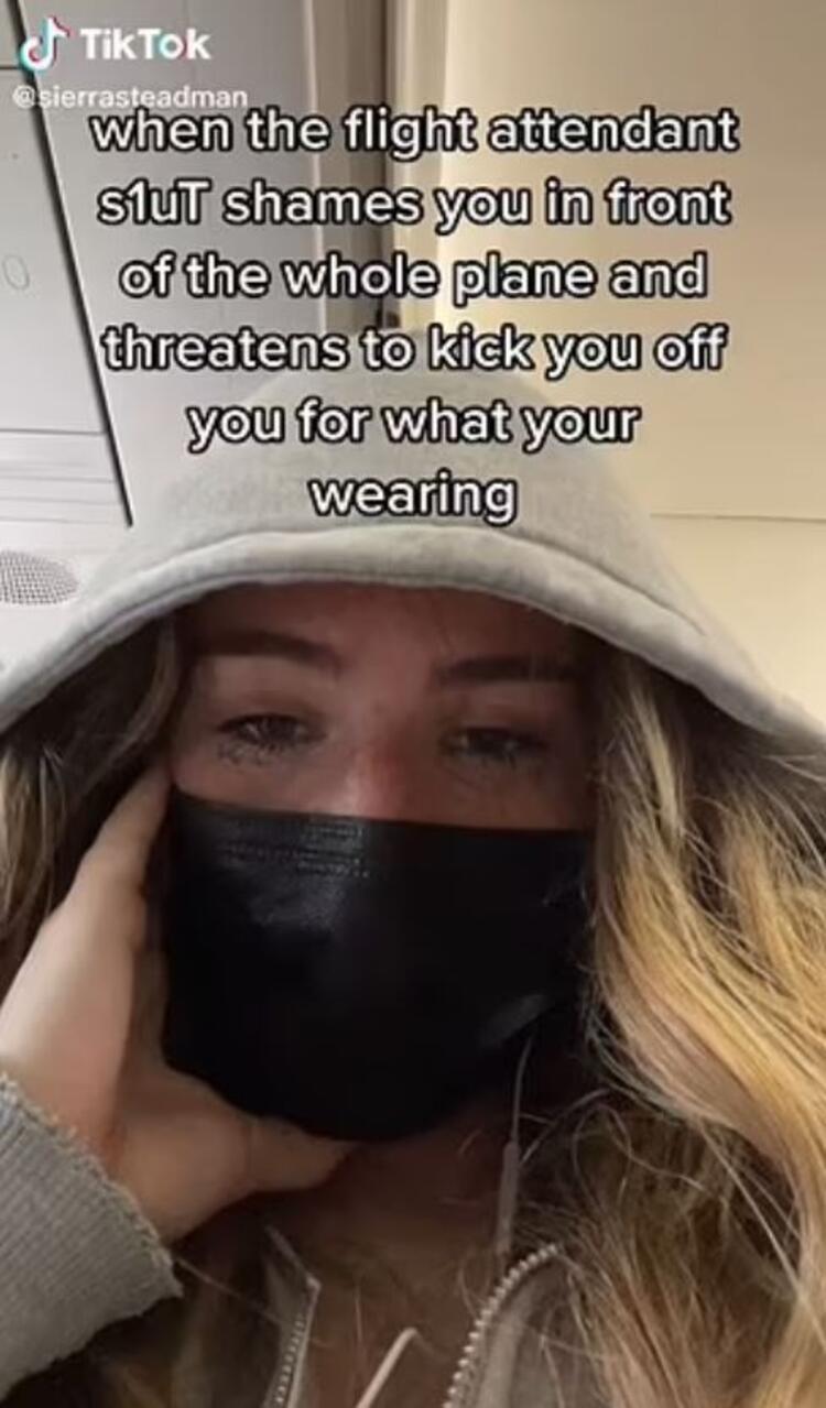 - Spor bir şort, göbeğini açıkta birakan bir üst ve üzerine de fermuarlı, kapüşonlu sweatshirt giyen Sierra, görevlinin kendisini kolundan tuttuğunu ve uçaktan atmakla tehdit ettiğini söyledi.