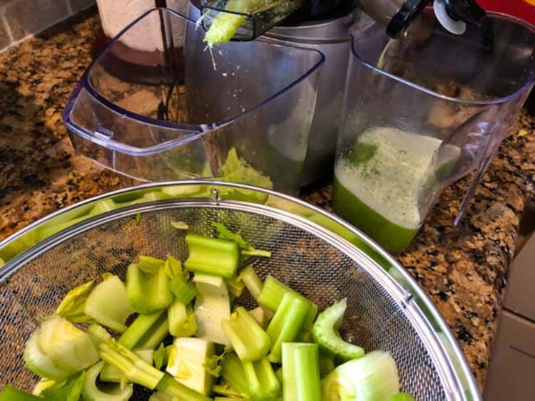 - İhtiyacınız olan şeyler; 1 demet kereviz sapı, su ve blender! Kereviz saplarının uçlarını kesin ve iyice yıkayın. Ardından blender’a koyun ve yarım su bardağı su ekleyin pürüzsüz hale gelene kadar karıştırın. İsterseniz blender’a maydanoz da ekleyebilirsiniz. Afiyet olsun!