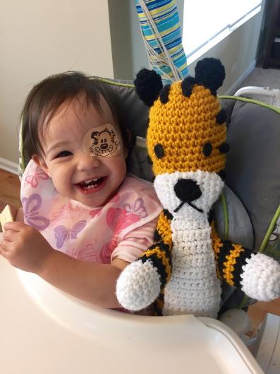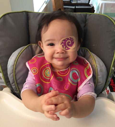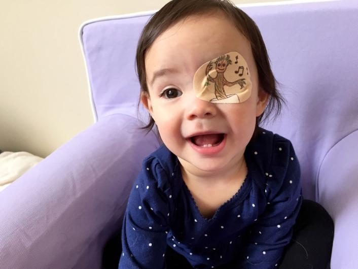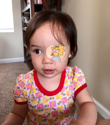 - Babası Geof ise göz bantları üzerine bazen bir çizgi film karakteri bazen de ünlü filmlerin logolarını çizerek bu durumu kızı için daha keyifli hale getirmeyi başardı.