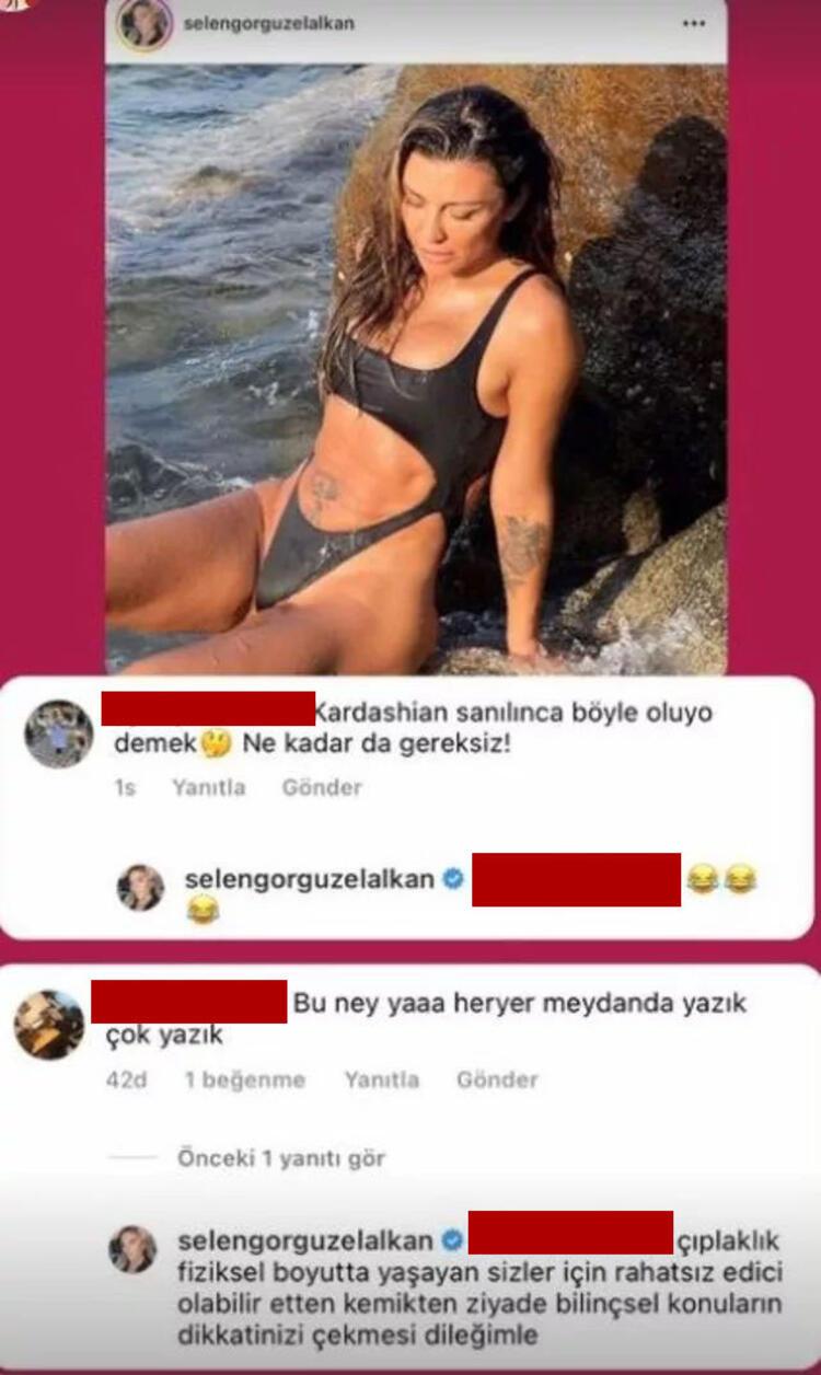 - Selen Görgüzel siyah küçük mayosuyla pozunu paylaşınca Kardashian kardeşlere benzetildi. Bu benzetmeyi komik bulan şarkıcı ve oyuncu “Her yer meydanda yazık” yorumuna ise tepkisiz kalmadı.