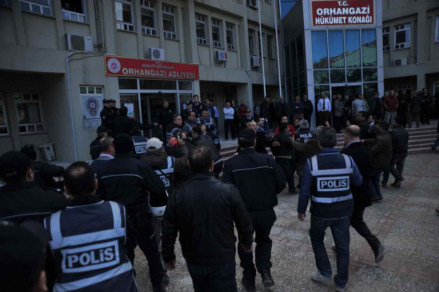 - Orhangazi Adliyesi önünde dün geceden itibaren nöbet tutan çevik kuvvet polisleri çevrede kuş uçurtmadı.