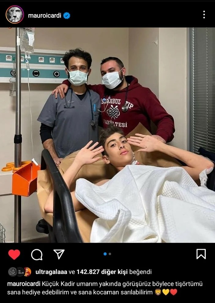 - Galatasaray’ın Arjantinli futbolcusu Mauro Icardi, “Asrın felaketi” olarak nitelendirilen Kahramanmaraş merkezli depremlerden etkilenen Adıyaman’da 87 saat sonra enkazdan sağ çıkartılan Kadir için forma imzaladı.
