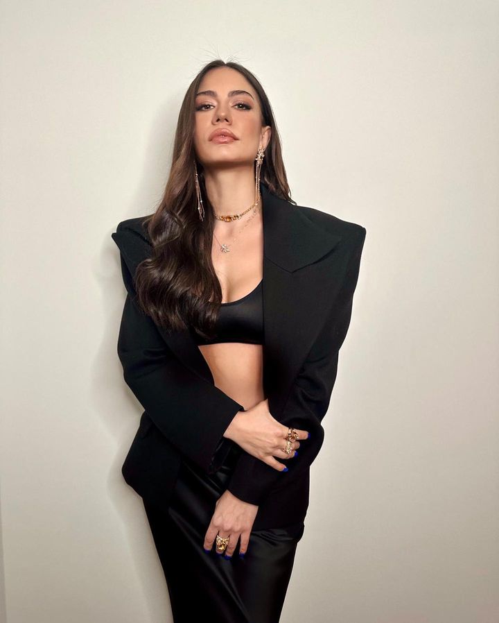- Siyahlar içinde olan Özdemir sütyen ceket kombini ile dikkat çekti.