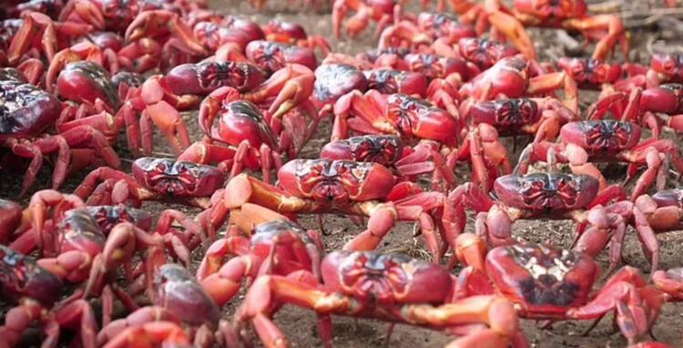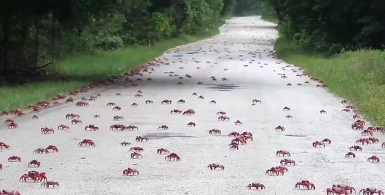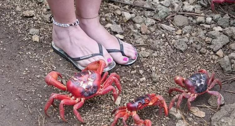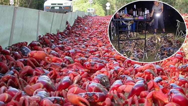 - 50 milyondan fazla kırmızı yengeci gören turistler tam anlamıyla şaşkına döndü. Üremek için her yıl okyanusa göç eden milyonlarca kırmızı yengeç Batı Avustralya’nın uzak kuzeybatısındaki Ulusal Park kıyısına yolculuk yapıyor.