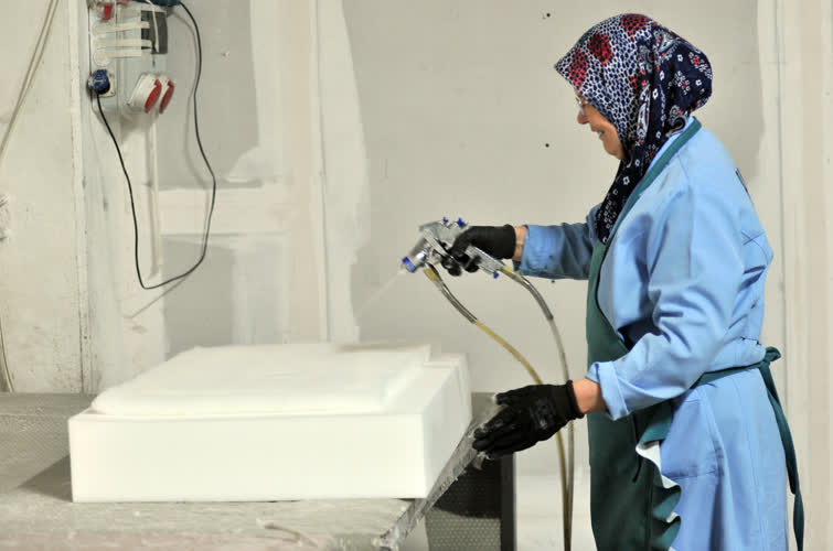 İnegöl mobilyasına kadınlar şekil veriyor Türkiye’nin önde gelen mobilya üretim merkezlerinden Bursa’nın İnegöl ilçesinde bu sektörde çalışan kadınlar, imalattan zımparaya kadar her aşamada “nakış işleme” titizliğiyle görevlerini yerine getiriyor. 18 28 38 48 58 68 78 88
