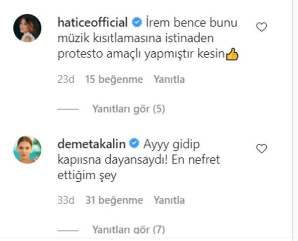 - Lerzan Mutlu’nun paylaşımlarına Hatice ve Demet Akalın’dan da yorum gecikmedi. (Sabah)