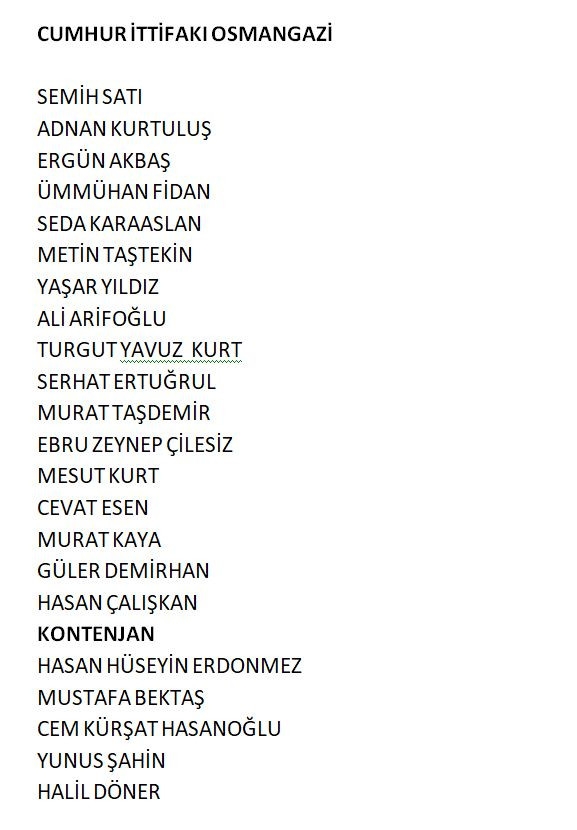 Diğer ilçe listeleri açıklandıkça olay.com.tr’de olacak