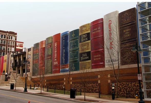 - Kansas Şehir Kütüphanesi (ABD) ABD`nin Missouri eyaletindeki Kansas Şehrinde yapılan Şehir Kütüphanesi, kitaplardan oluşmuş gibi tasarlanıp yapılan ilginç cephesiyle dikkat çekmektedir.