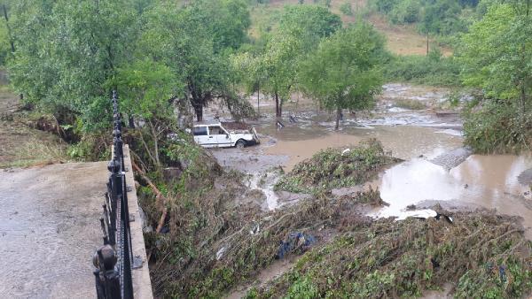 - Azdavay ilçesi ile Kastamonu’yu birbirine bağlayan kara yolunun Samancılar mevkisinde, sağanağın ardından sel oluştu.