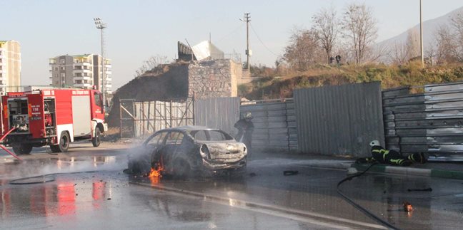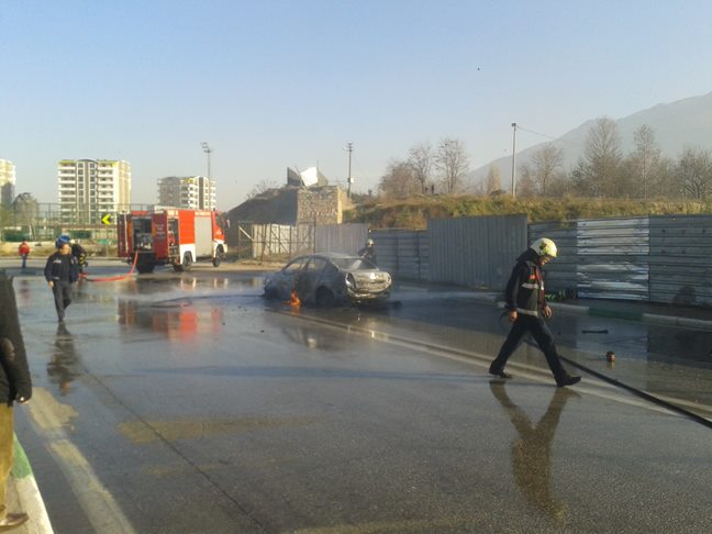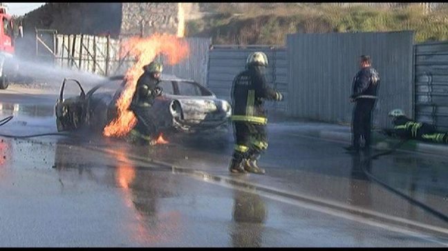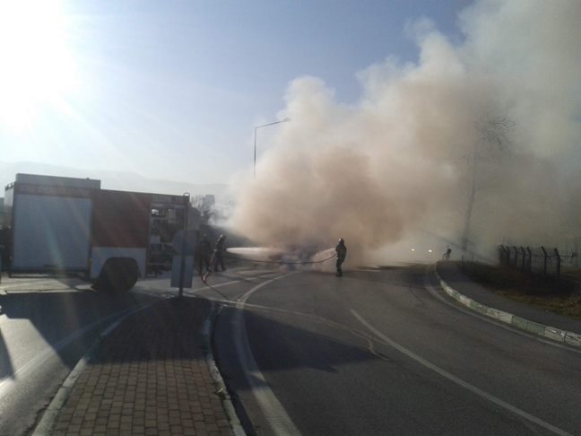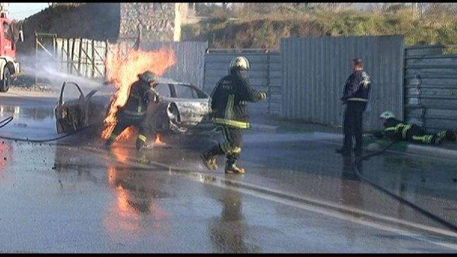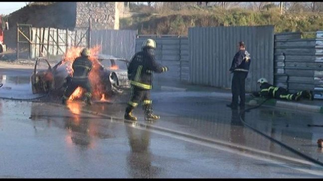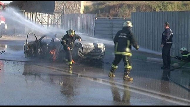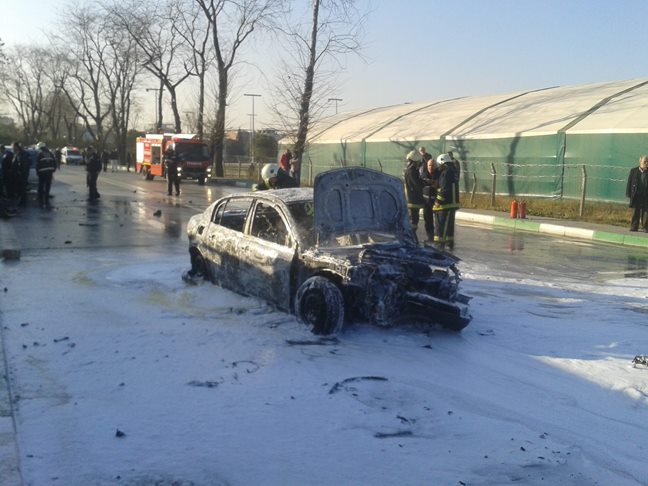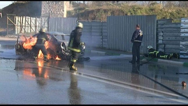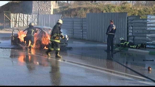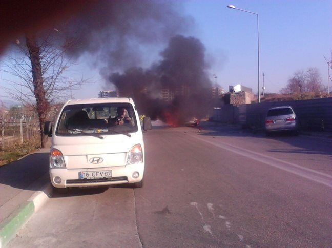 Bursa’da iki otomobilin çarpışması sonucu alev topuna dönen LPG’li araca müdahale eden itfaiye eri az daha yanıyordu. Alevlerden son anda kaçan itfaiye eri, daha sonra söndürme çalışmalarına devam etti.