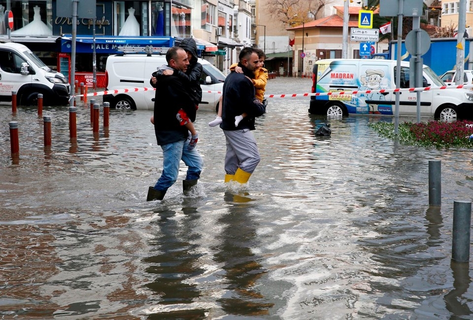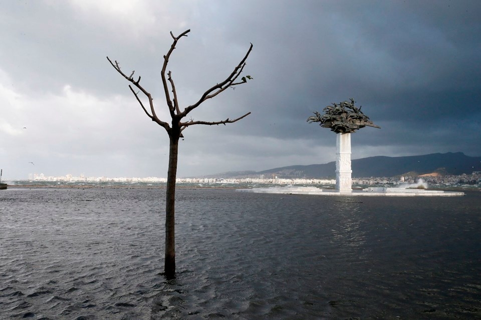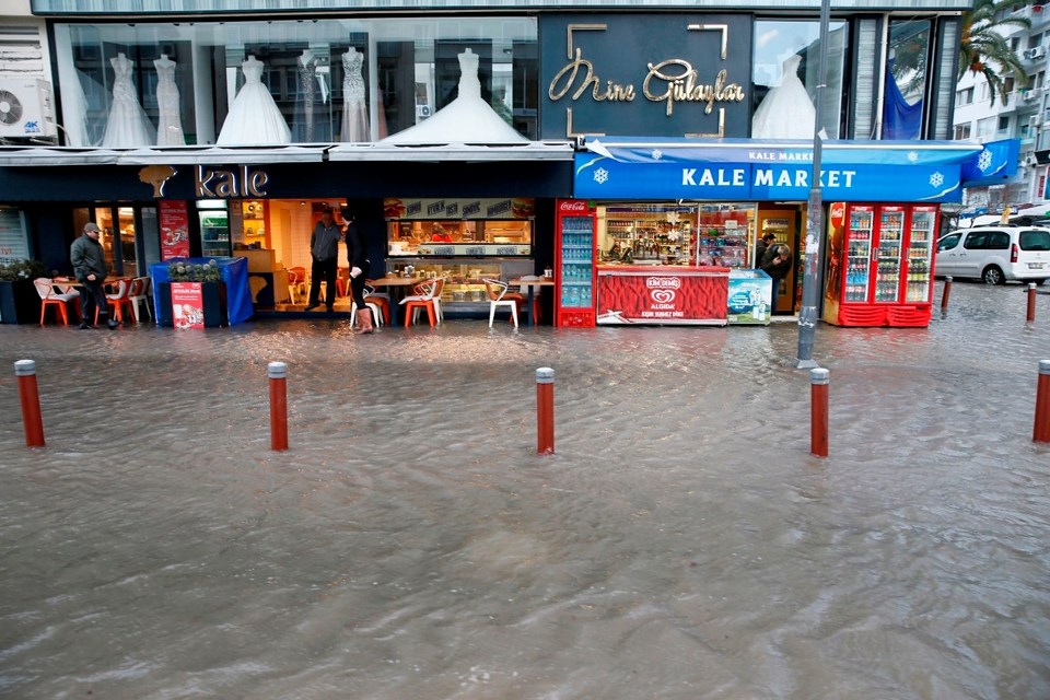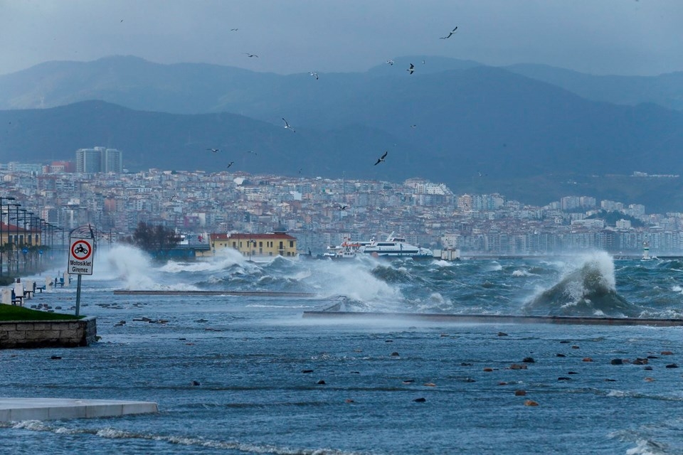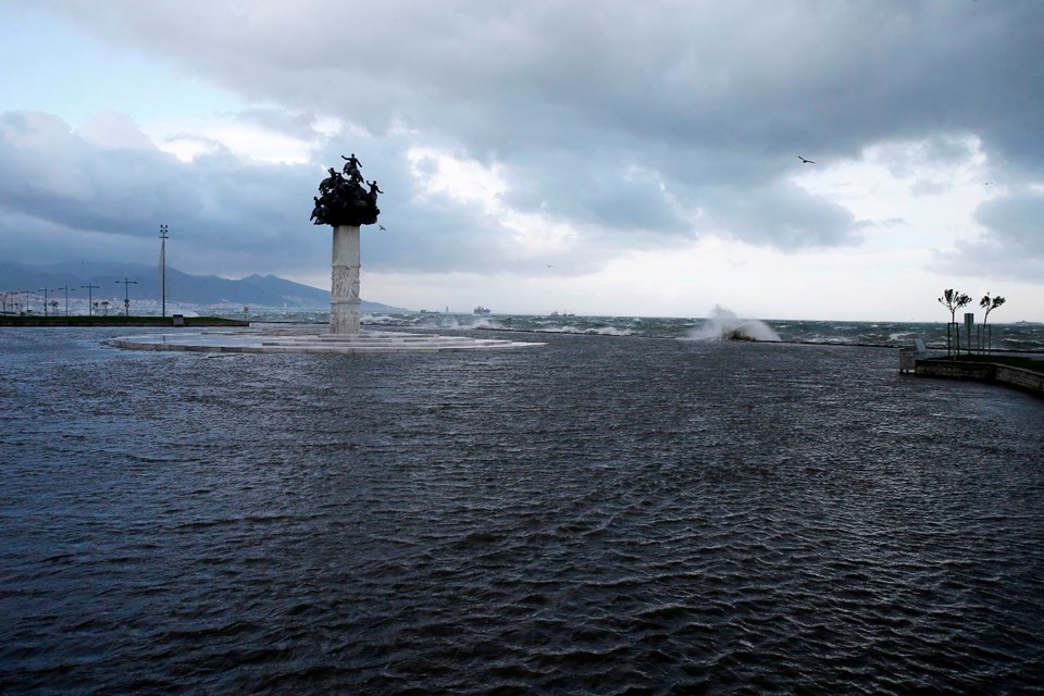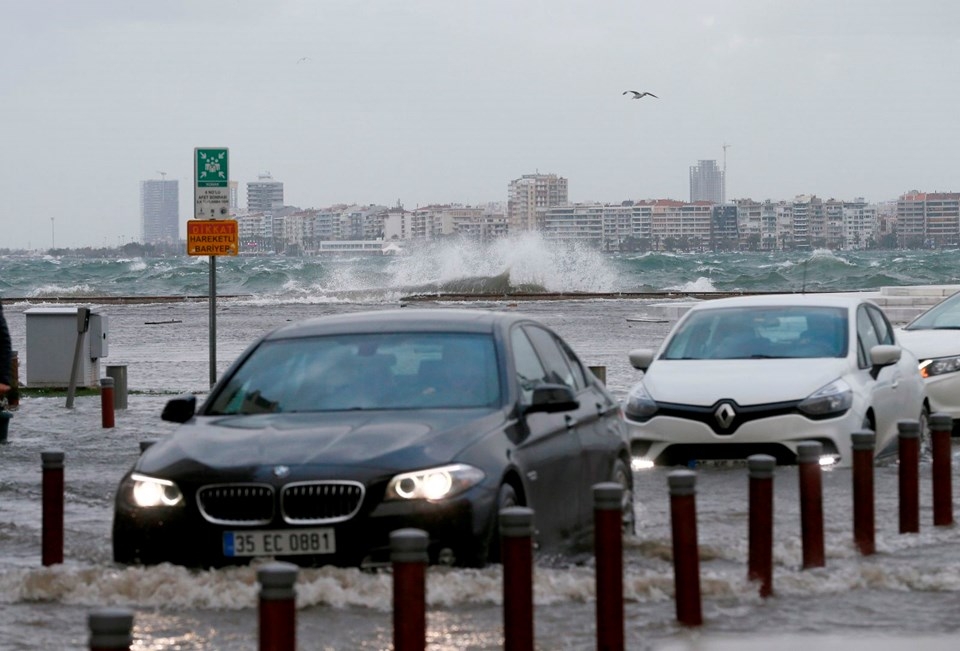 İzmir’de etkili olan fırtına nedeniyle deniz taştı, 1. Kordon’daki birçok işyerini su bastı, vapur seferleri iptal edildi. Taşma nedeniyle araçlar ve yayalar ulaşımda güçlük yaşadı, 11 ağaç devrildi.
