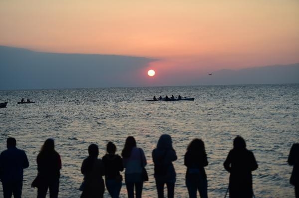Bursa’nın İznik ilçesinde, bu yıl ilk kez düzenlenen ‘İznik Ekinoks Festivali’ne katılanlar İznik Gölü kıyısında gün batımını izledi. Manzara büyük beğeni topladı.