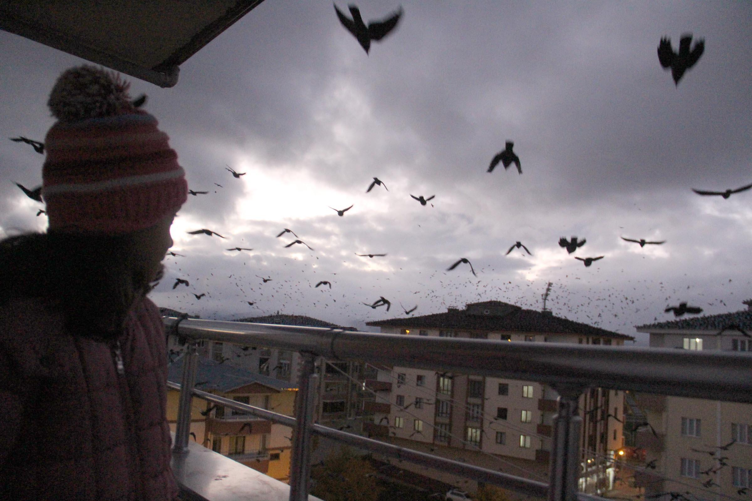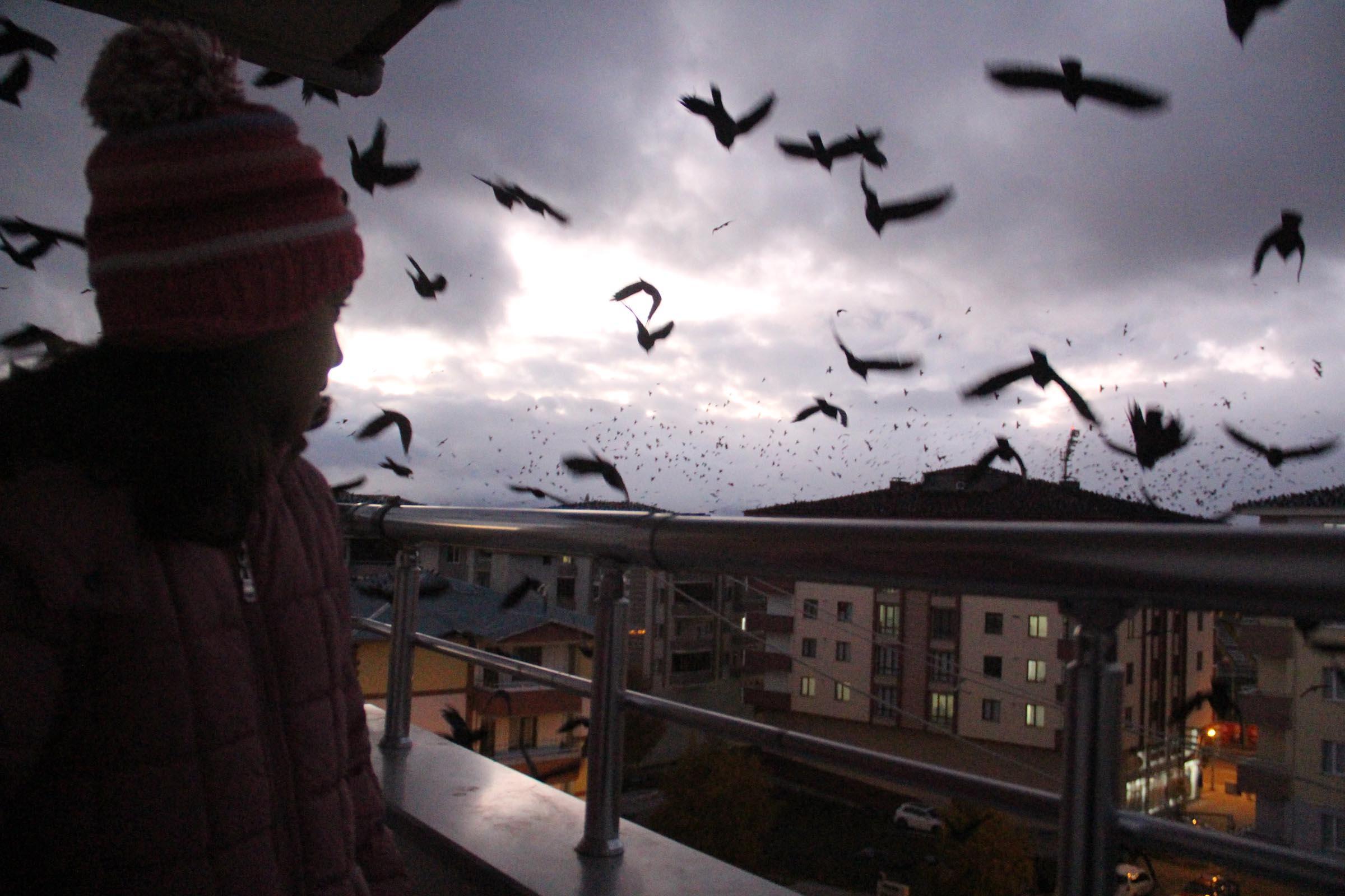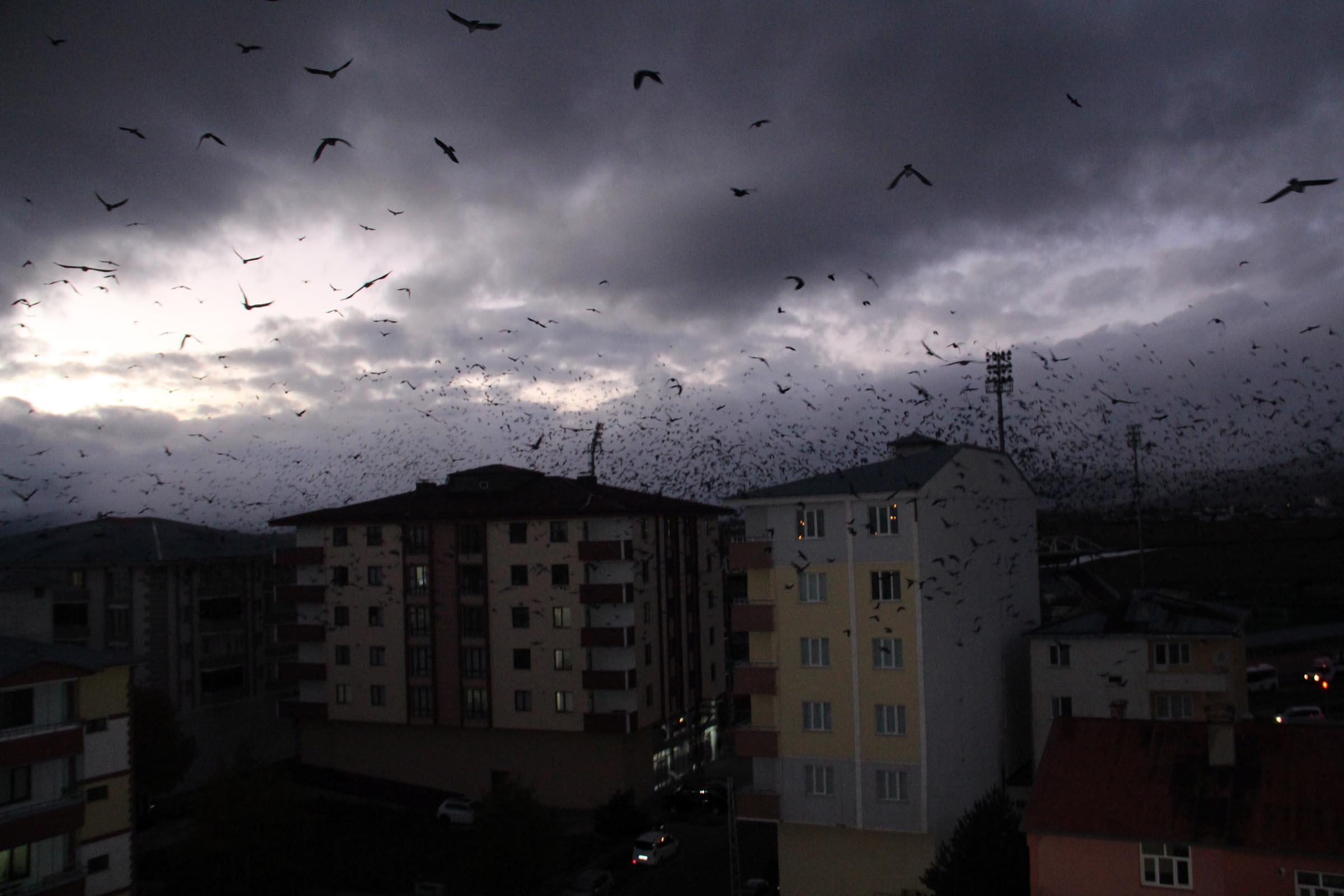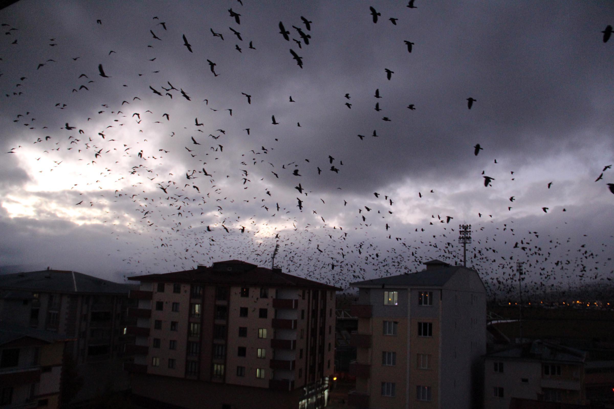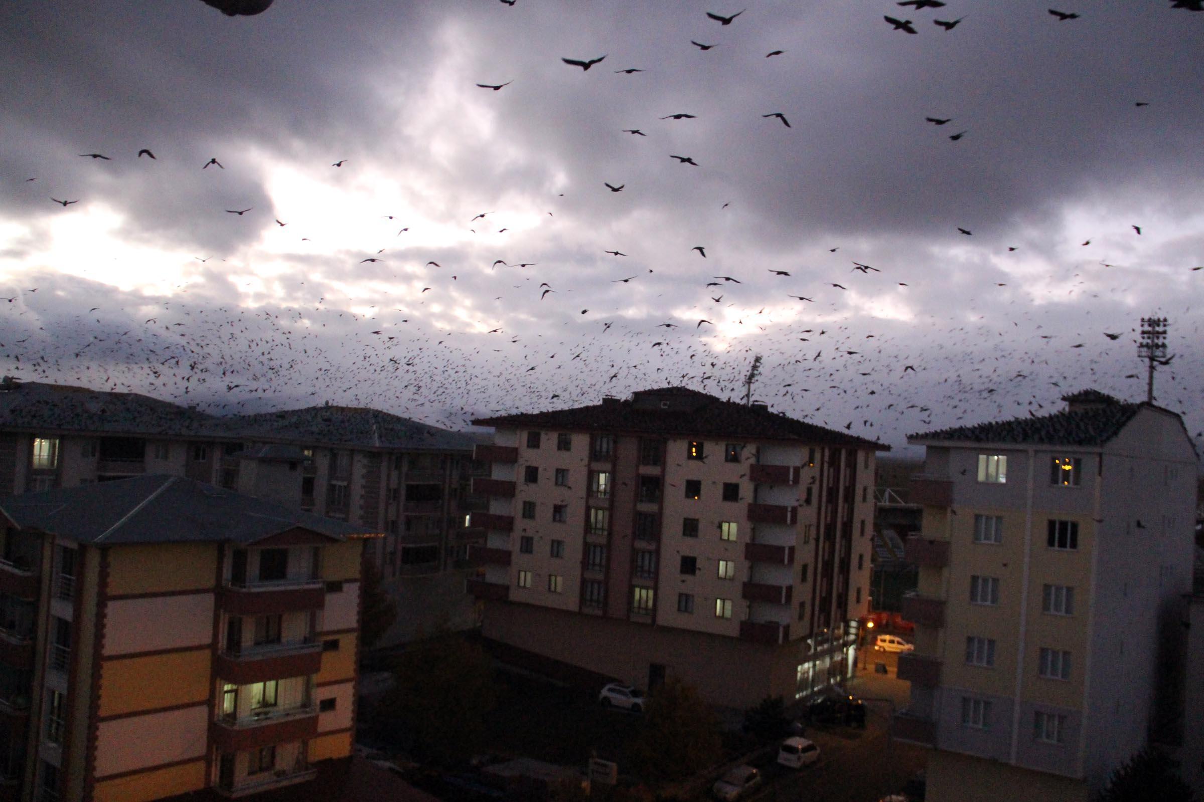 - Geçen yıllara göre, sayıları daha da artan kargalar, sık sık gökyüzünü kaplıyor.