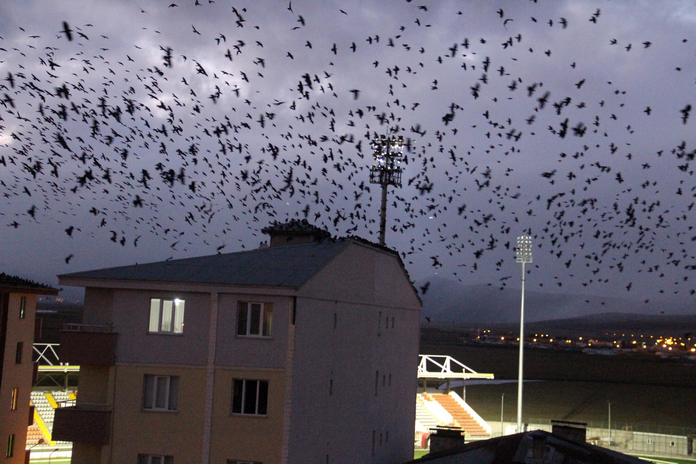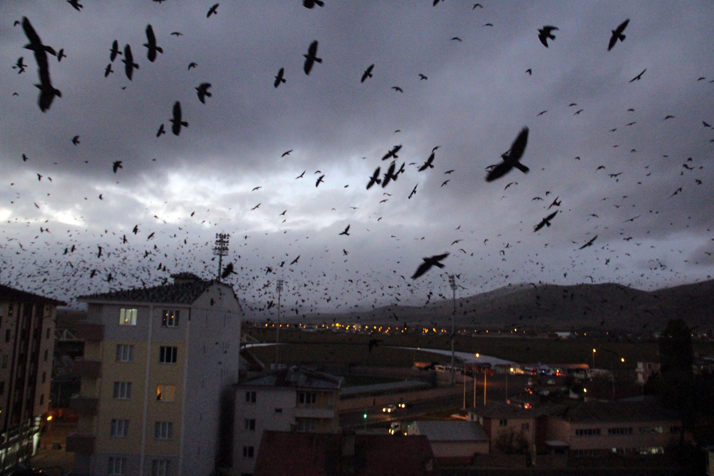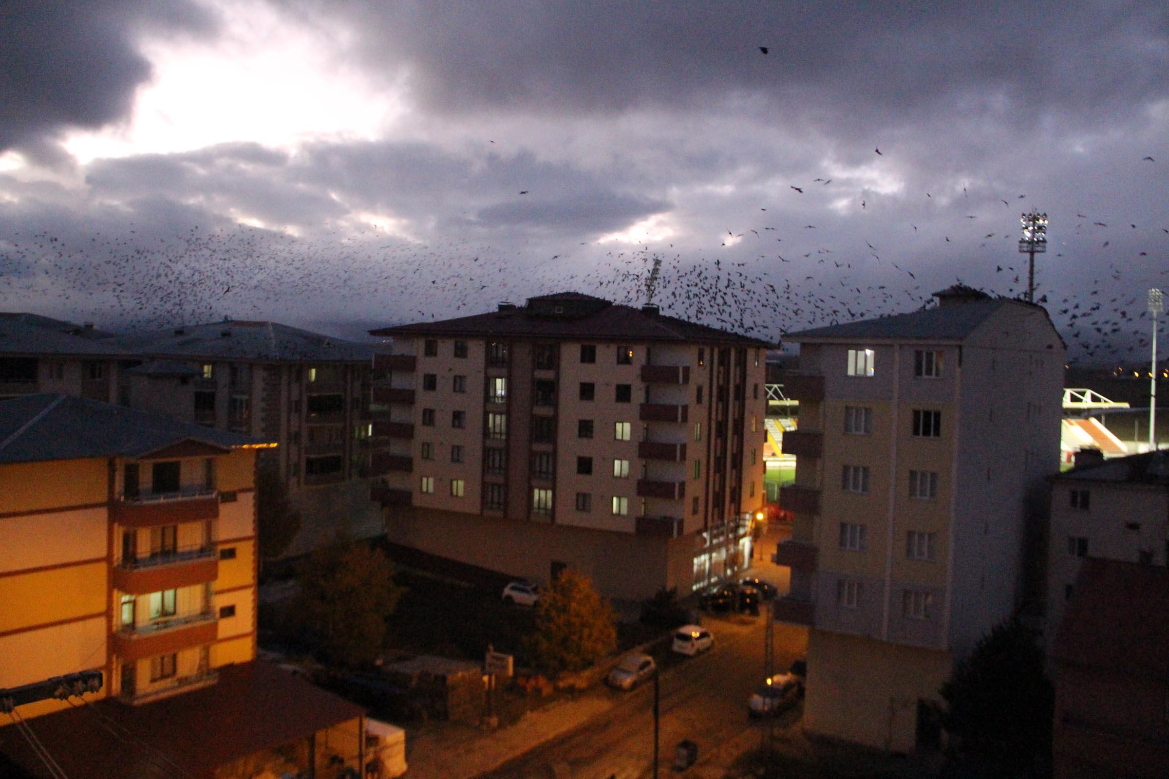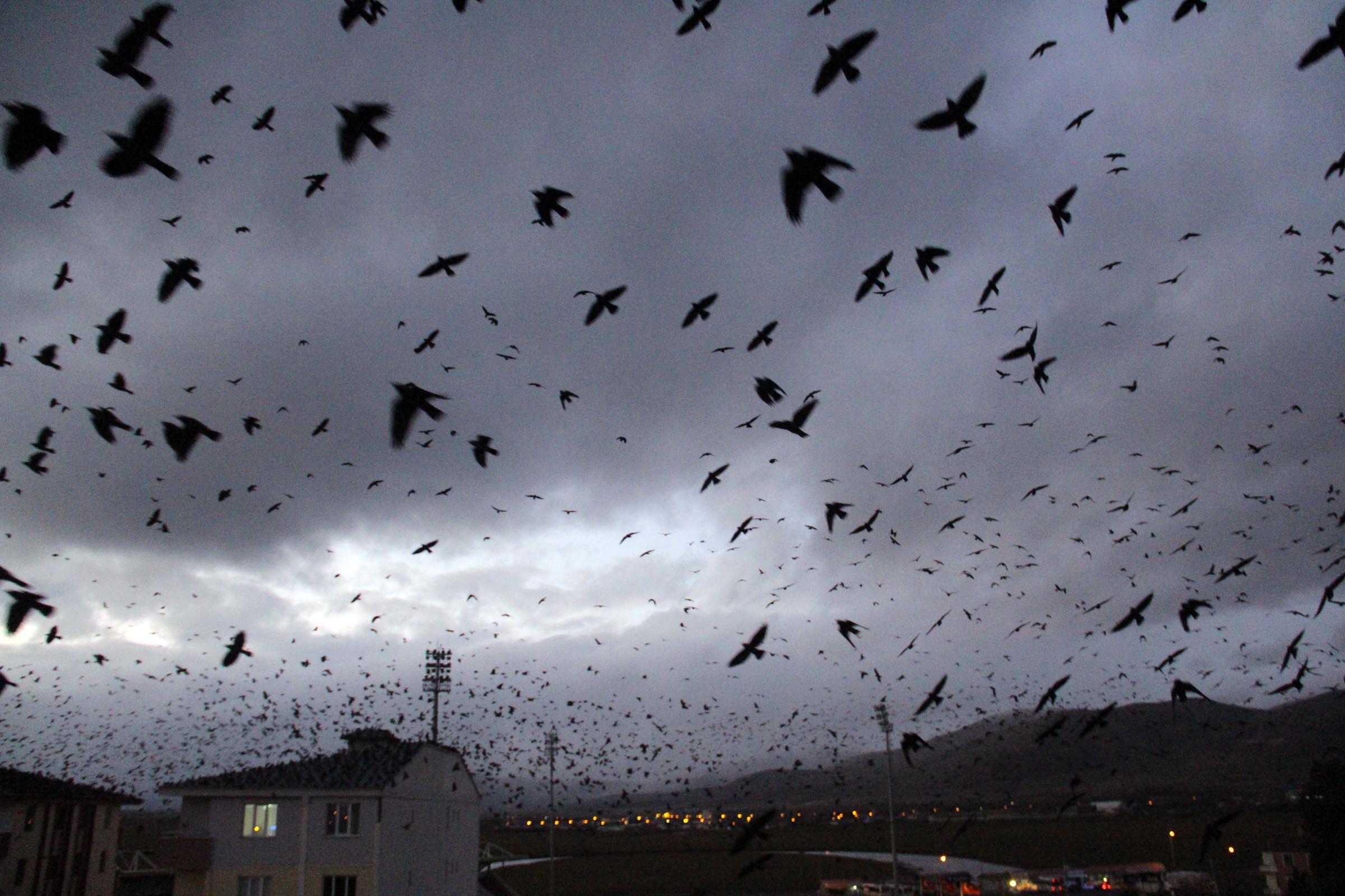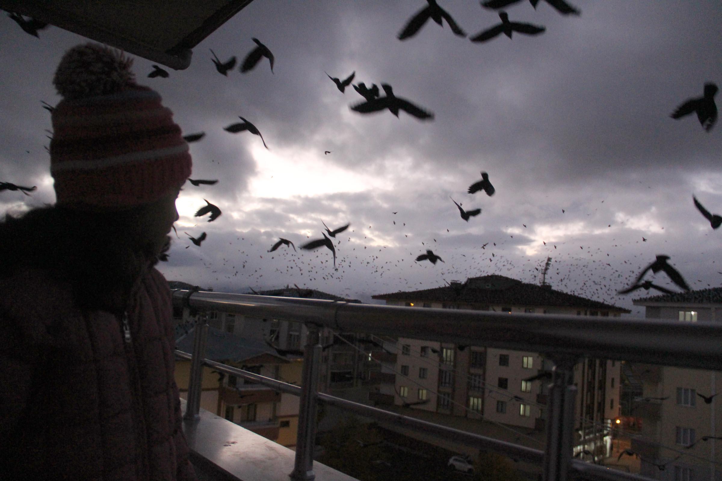 - Geçen yıllara göre, sayıları daha da artan kargalar, sık sık gökyüzünü kaplıyor.