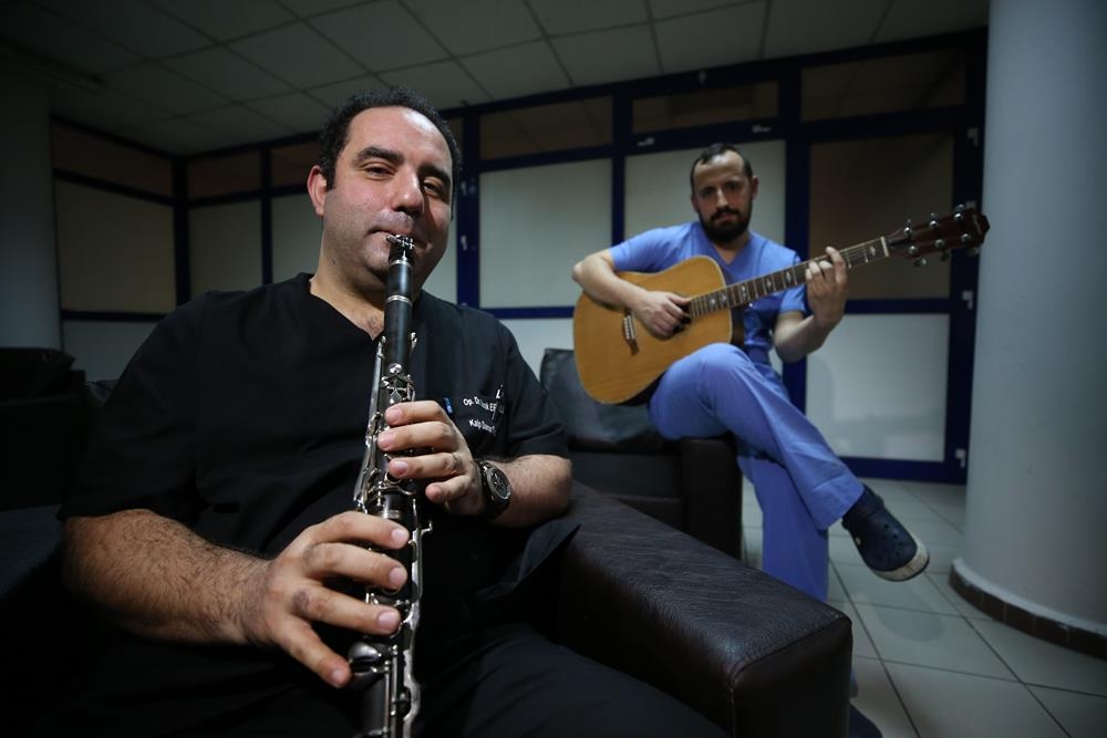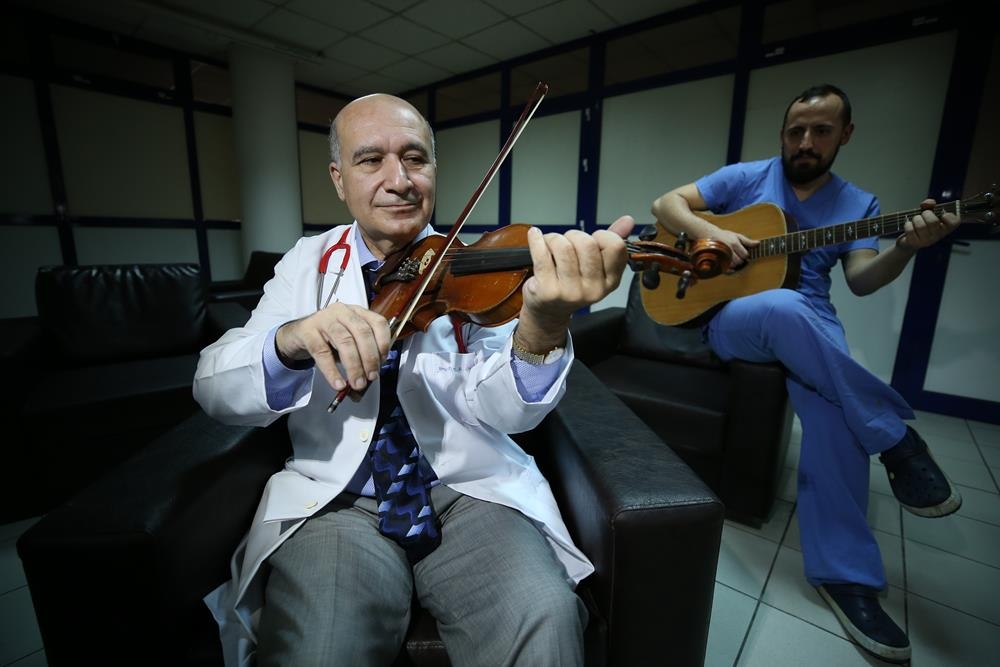 ‘Kalp damar cerrahisi’nin müzisyen doktorları Bursa’daki Yüksek İhtisas Eğitim ve Araştırma Hastanesi Kalp Damar Cerrahisi Kliniği’nde görev yapan 4 hekim, günün yorgunluğunu, stresini keman, ney, gitar ve klarnet çalarak atıyor. 19 29 39 49 59 69 79 89 99